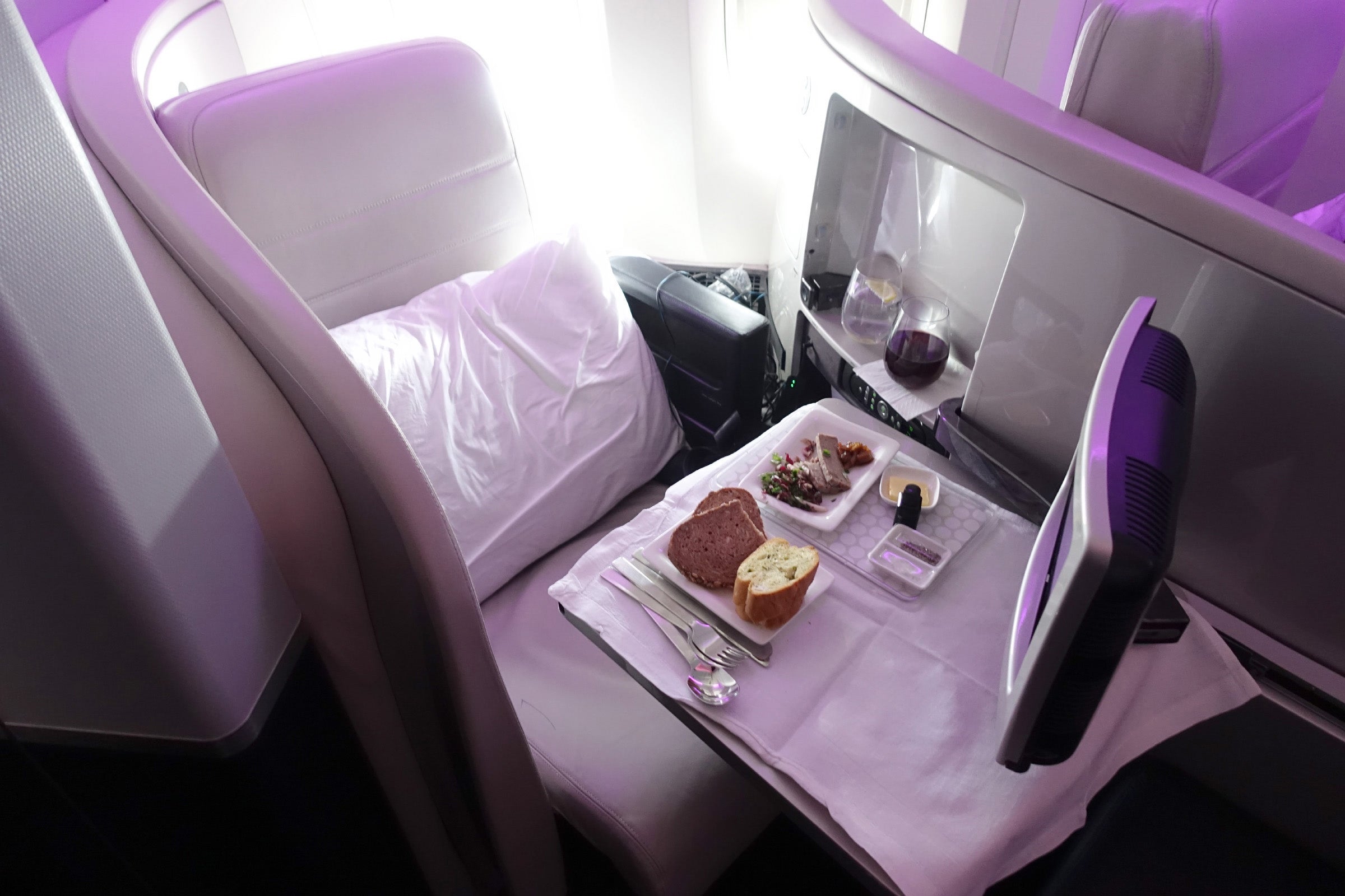I chose a seat in the very last row of business class, since I figured that would offer the most privacy. While 12A is marked as "yellow" on SeatGuru, I didn't have to deal with any crying babies from the large premium-economy section behind.