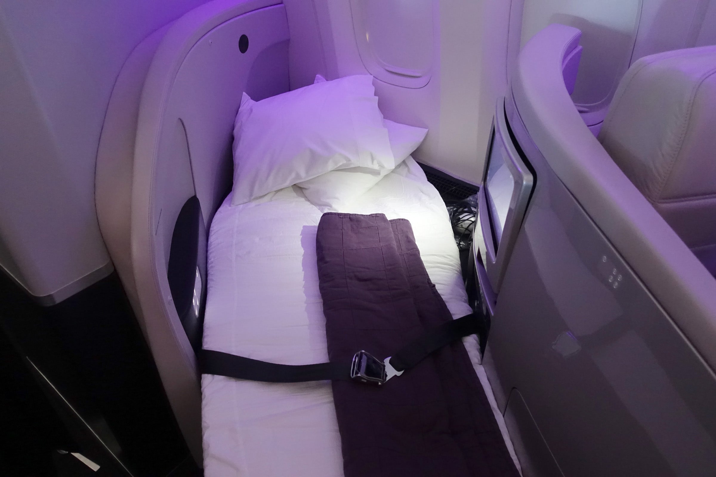 The seat does lie completely flat, but a flight attendant is required to make that adjustment, and once you're flat you can't move the seat on your own at all.