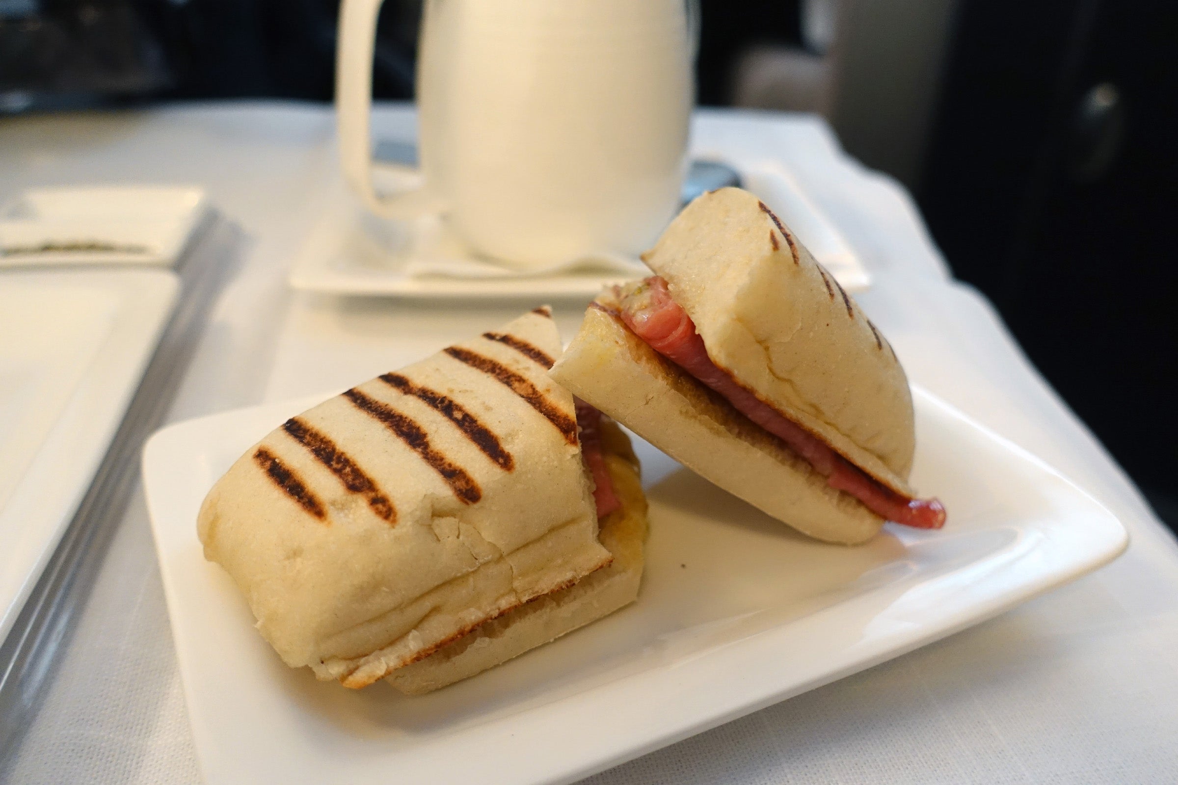 I was offered a choice of a panini — salami with mozzarella or feta with tomatoes and peppers. It was tasty but a fairly small portion given the length of the flight.