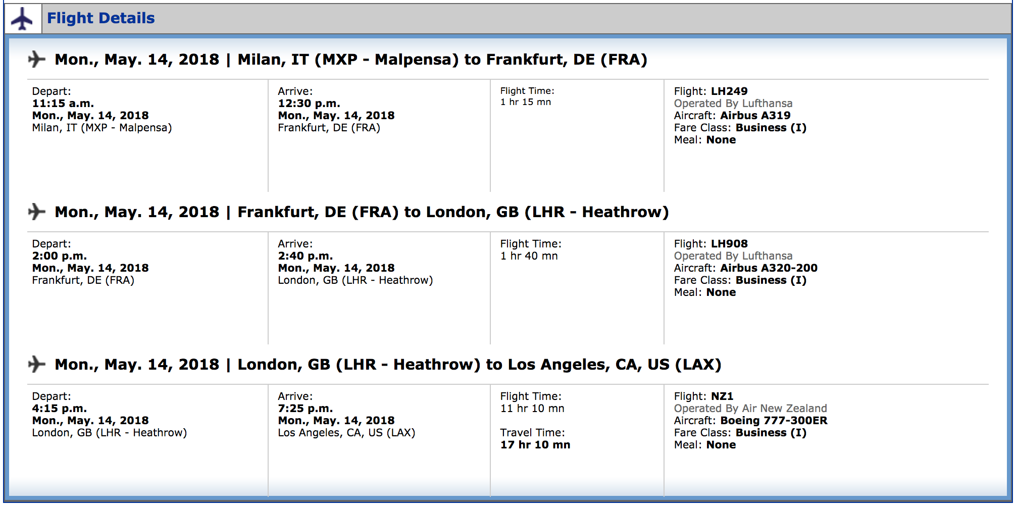 I booked my ticket through United MileagePlus for 70,000 miles plus $122 in taxes. Beginning my itinerary in Italy saved me from paying the UK's ridiculous Air Passenger Duty — roughly $210 for this premium-cabin flight.
