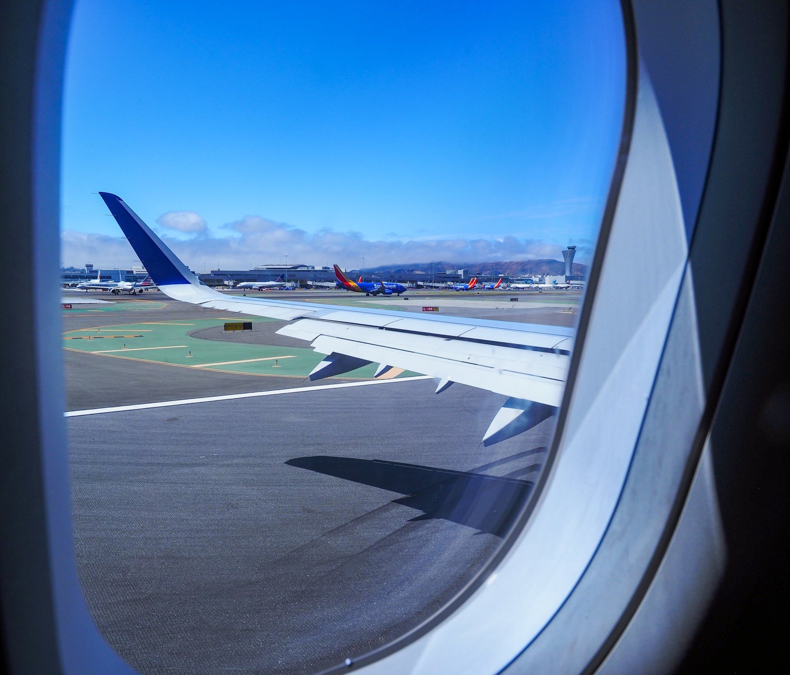 Finally at 1:34 p.m., we pushed back and slowly proceeded to Runway 1R. Perhaps the one consolation of an SFO delay is the great airline traffic at the airport. Planespotting helped this AvGeek pass the time.