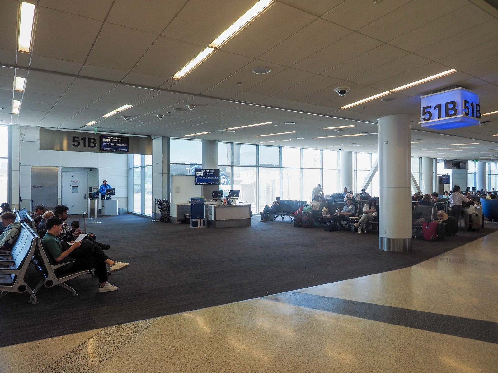 Flight 1024 departed from Gate 51B in Terminal 2, with boarding set to begin at 12:30 p.m. Coming from the Fillmore District, I gave myself 30 minutes to get to SFO by Lyft, and even with TSA PreCheck and CLEAR, aimed to arrive nearly two hours early to visit a lounge and have enough time to take photos of the terminal. I had been sure to check in and get my electronic boarding pass the day prior.