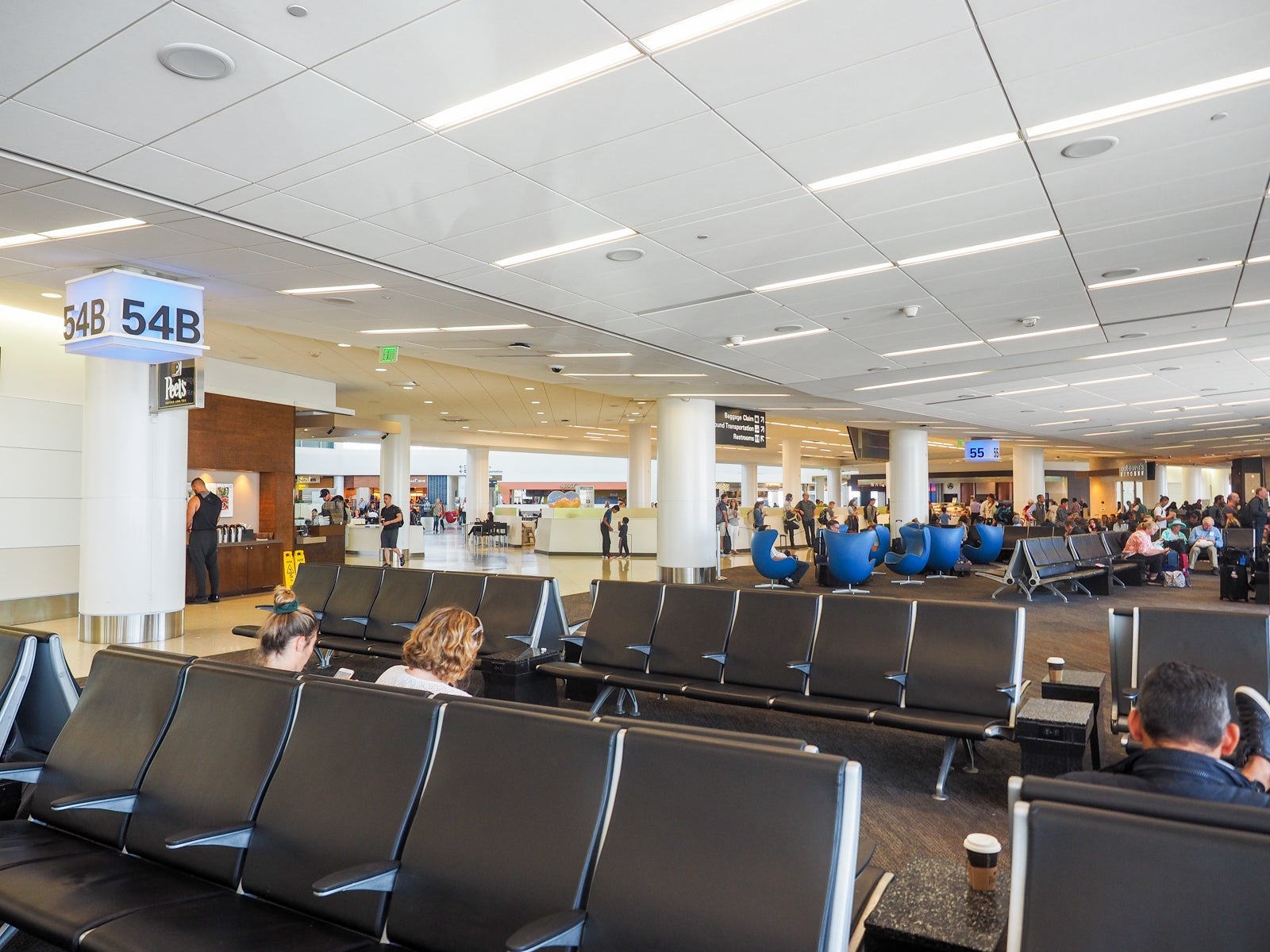 In 2020, Alaska plans to open a 8,500-square-foot "top floor" lounge in Terminal 2, which will be the second-largest lounge in its network and promises spectacular runway views. On the day of my flight, though, I'd planned to visit the Centurion Lounge in Terminal 3 by Gate 73, but I made a rookie mistake: Terminal 3 isn't accessible for airside connections to Terminal 2. After realizing my mistake, I proceeded down the wide corridor to walk around a bit before boarding.