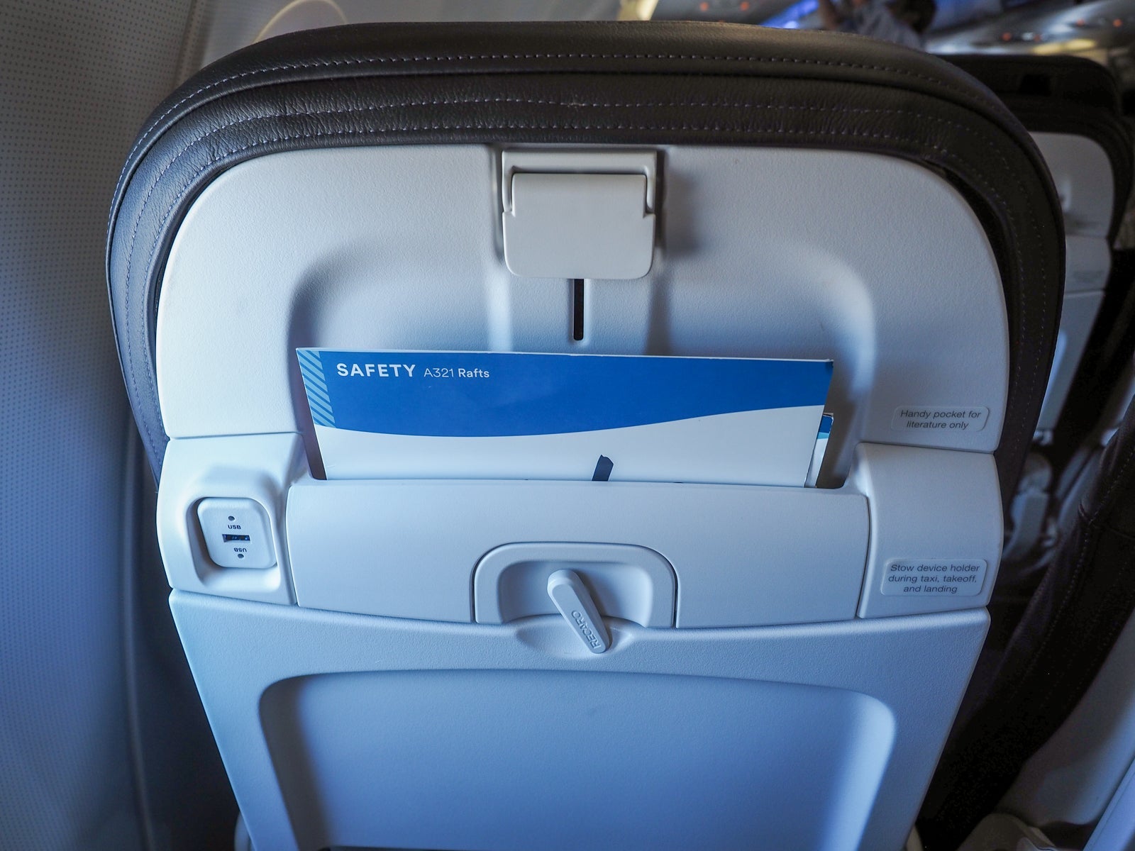 Every seat stocks a few notable features, including a USB and universal power outlet, a smart choice, considering the airline isn't installing entertainment screens on seatbacks.