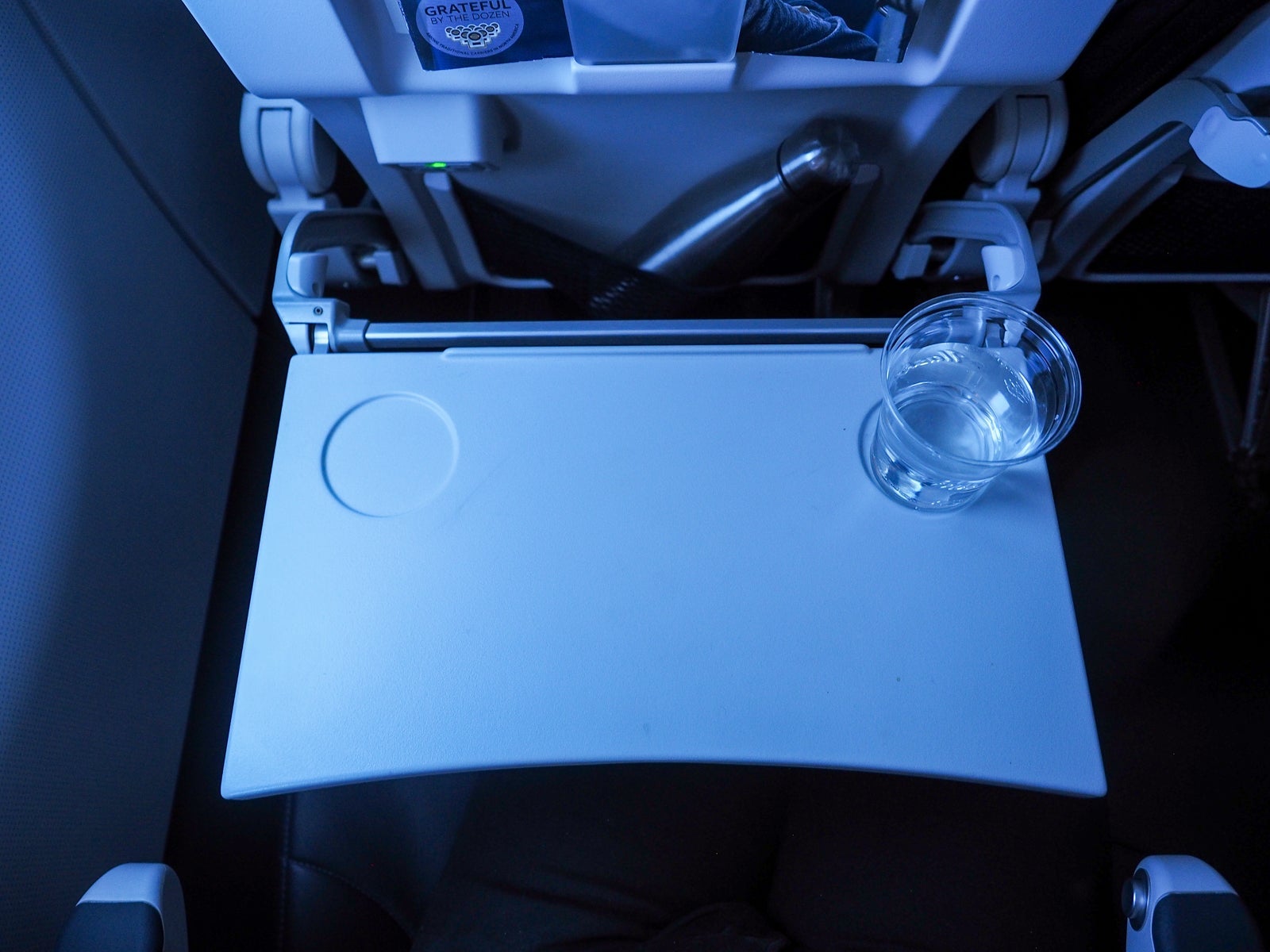 The folding tray table was on the smaller side, and couldn't fit much more than a 13-inch MacBook Pro along with a cup or two.