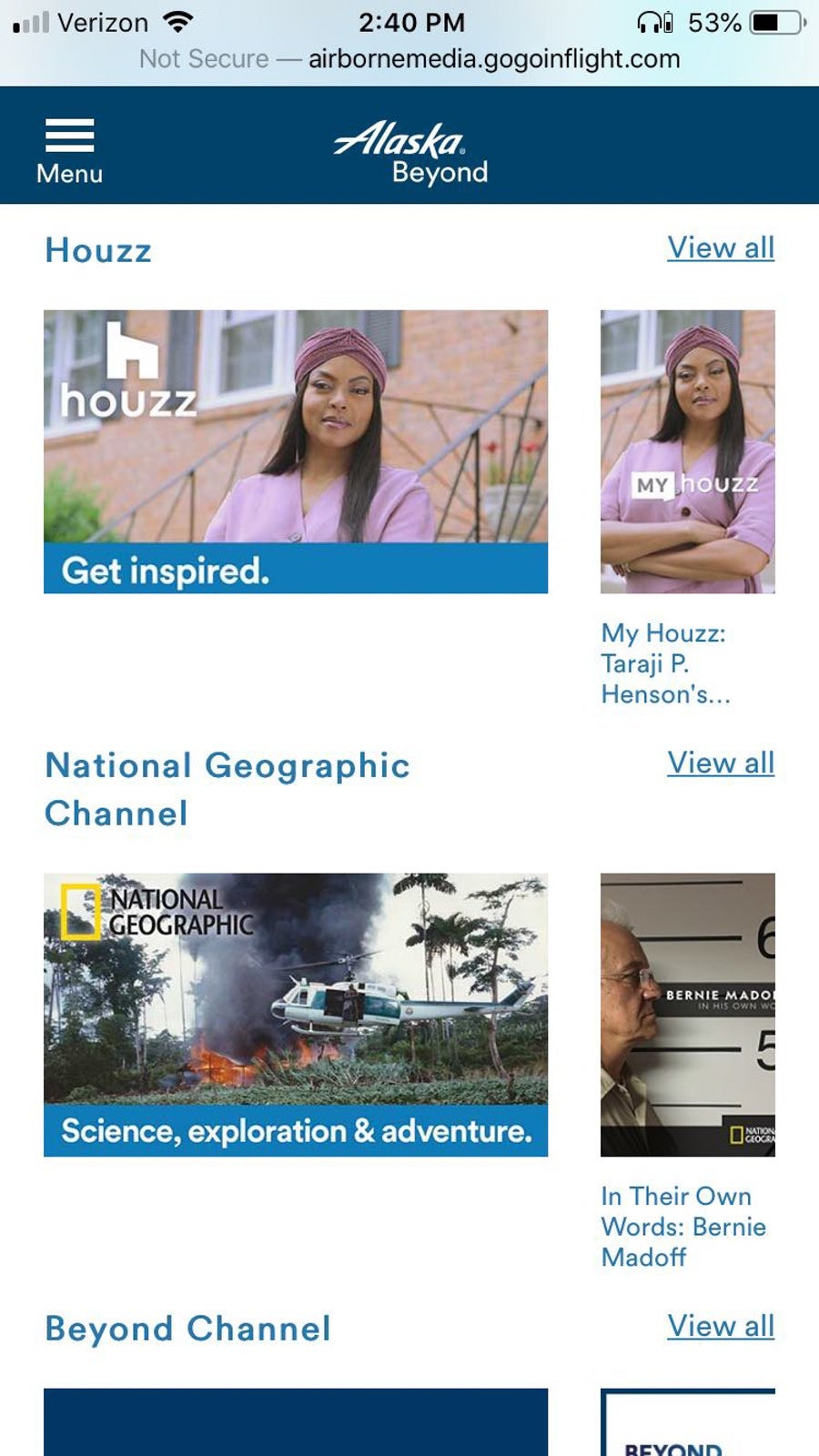 Alaska doesn't have built-in entertainment screens on its planes, but it does have the BYOD down. For your own sake do some quick research before your flight to be sure you're prepared. Wi-Fi worked seamlessly, and, even though I didn't like the food that I ate, it wasn't outrageously expensive, and the other options could have been more satisfying.