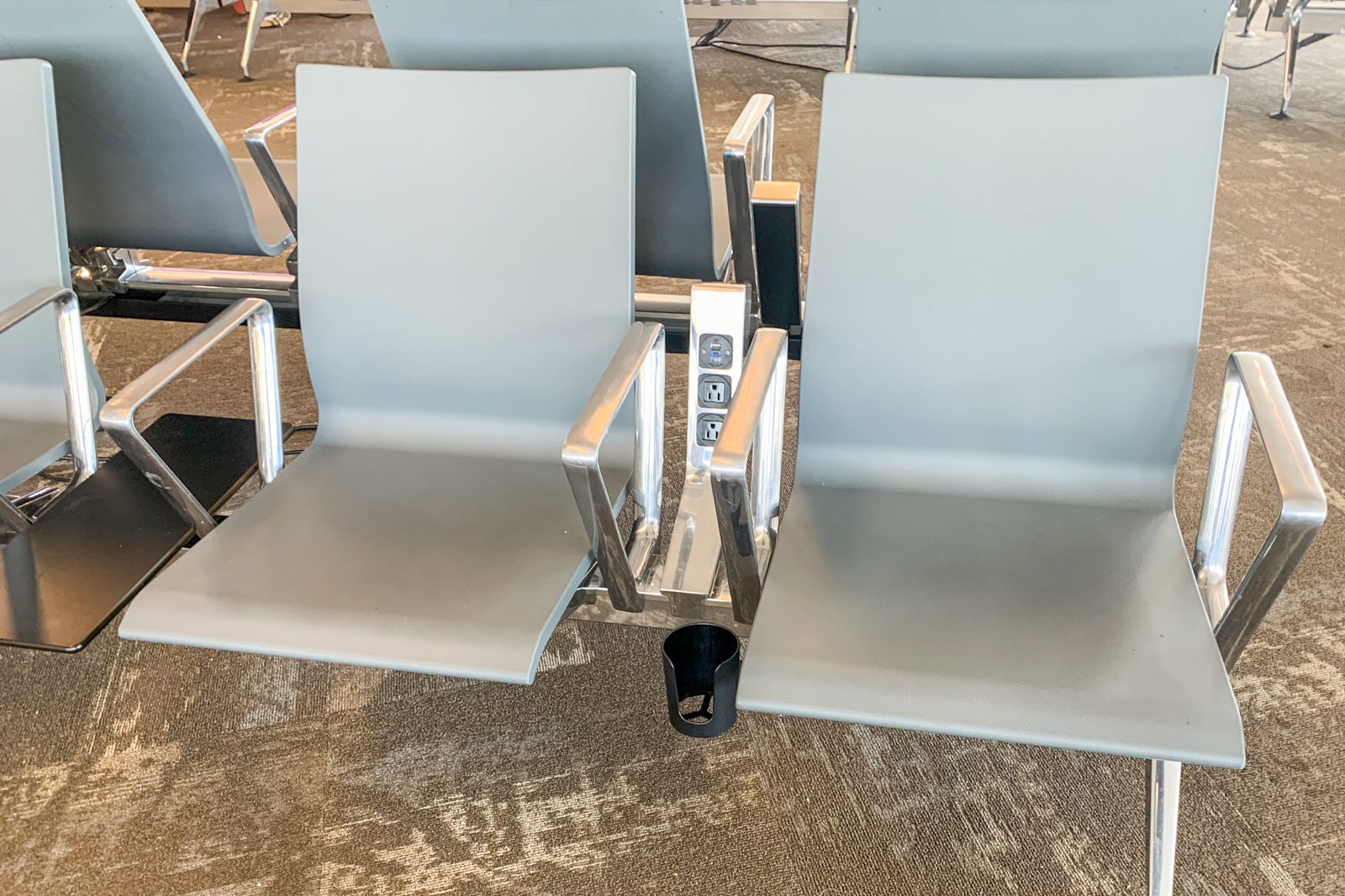 I was departing from gate N14. The gate has tons of seating, and there are multiple outlets between every seat. It does fill up before the various banks of flights, so keep that in mind.