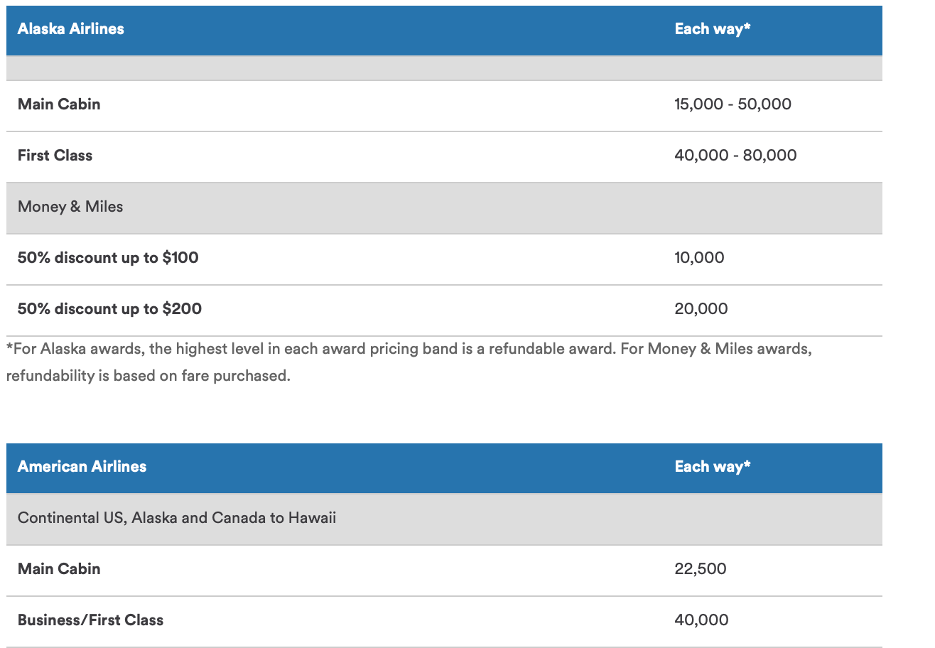 I could have used Alaska Mileage Plan miles for the trip. The airline uses a distance-based award chart with a ticket from anywhere in North America to Hawaii for between 15,000 and 50,000 miles for coach and 40,000 and 80,000 miles for first class (one-way). I found availability in September for as low as 30,000 miles round-trip for main cabin or 160,000 for first class. You could get first class as low as 120,000 miles but that includes a brutal layover and a change of planes.