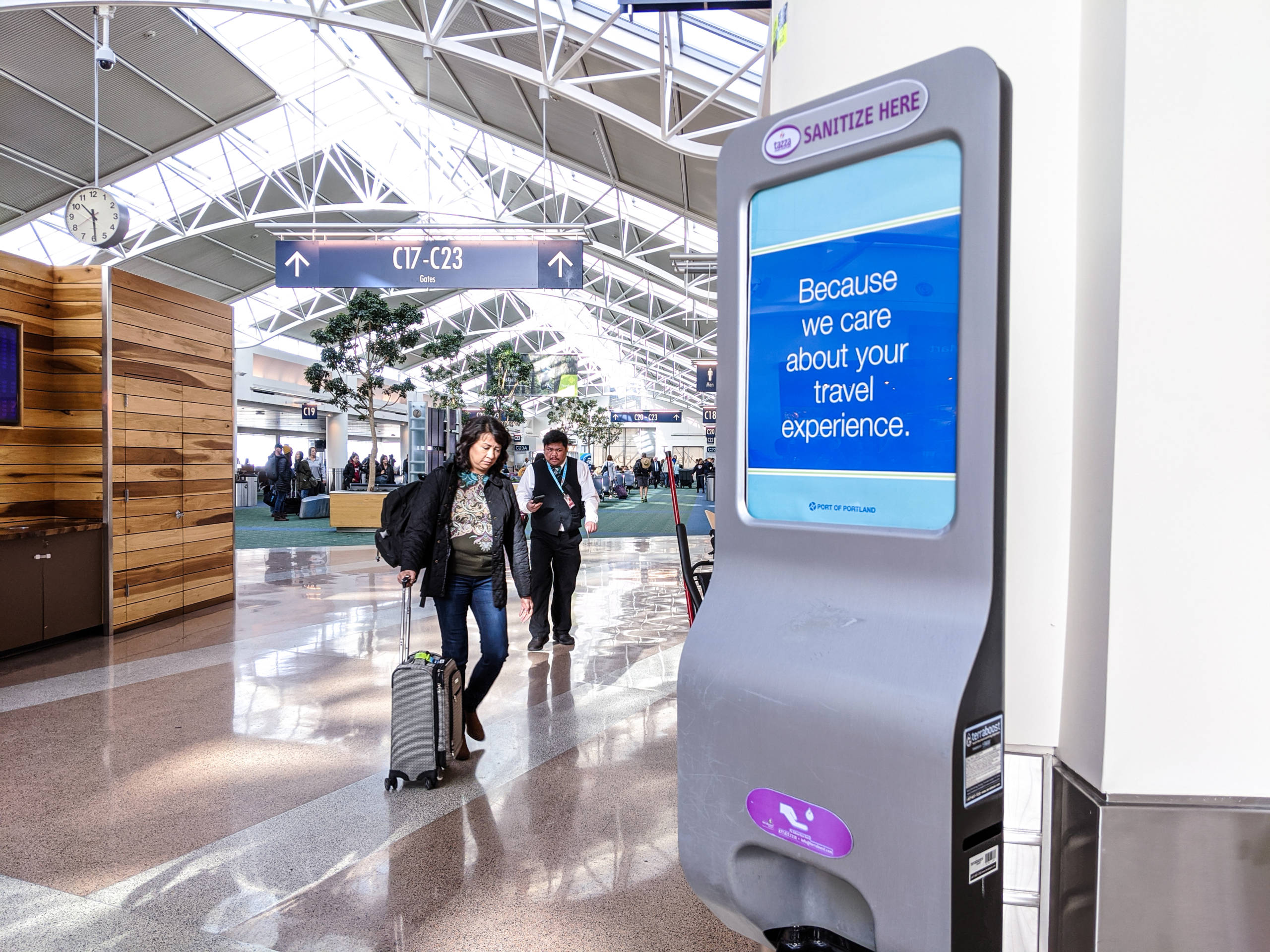 The Portland airport had hand sanitizer dispensers set up everywhere, but half of them were empty and hadn't been refilled.