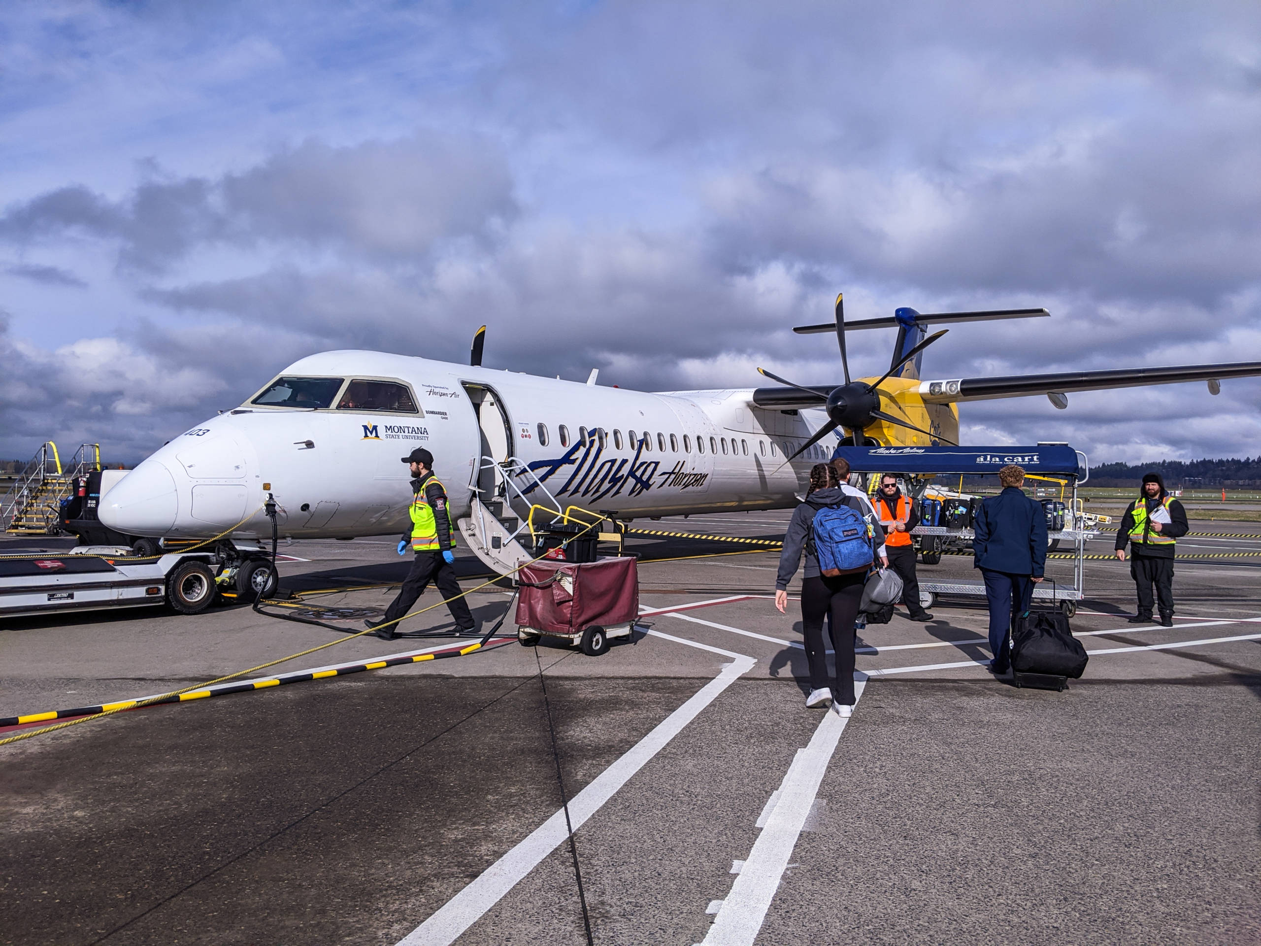 Only one airline among the U.S. majors operates turboprop planes: Alaska Airlines, whose regional affiliate Horizon Air flies the twin-engined Bombardier Q400 on many short hops in the Pacific Northwest. That was the plane I boarded in early March on one of my last trips before the U.S. shut down to contain the spread of COVID-19.