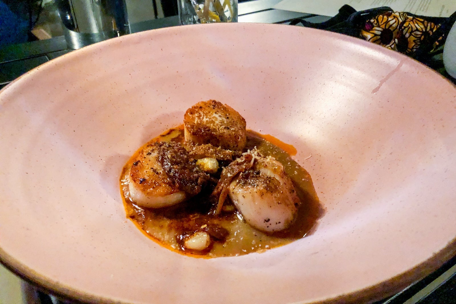 Among the standout dishes we tried were savory scallion pancakes with green papaya slaw and smoky eggplant dip ($13), seared scallops over a rich plantain puree with crunchy choclo corn and chili oil ($25) and crispy grilled octopus drizzled with mouthwatering mixed-seed green mole and garnished with crispy garbanzo beans, and earthy mushrooms ($30). The signature cocktails we tried, including the Beacon with Redwood Empire rye and bourbon, Argonaut "Fat Thumb" brandy, date syrup and Szechuan bitters ($18), were all pretty phenomenal … if strong!