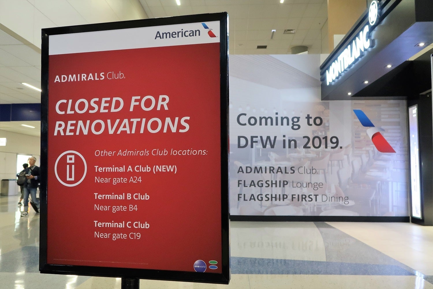 JT laid out the state of Terminal D's lounges in a full post, but to keep things short: It was sad. The Centurion Lounge was closed and won't be reopening — at least in its previous location — the AA lounge is being renovated into a Flagship Lounge, and The Club at DFW is at a temporary location.