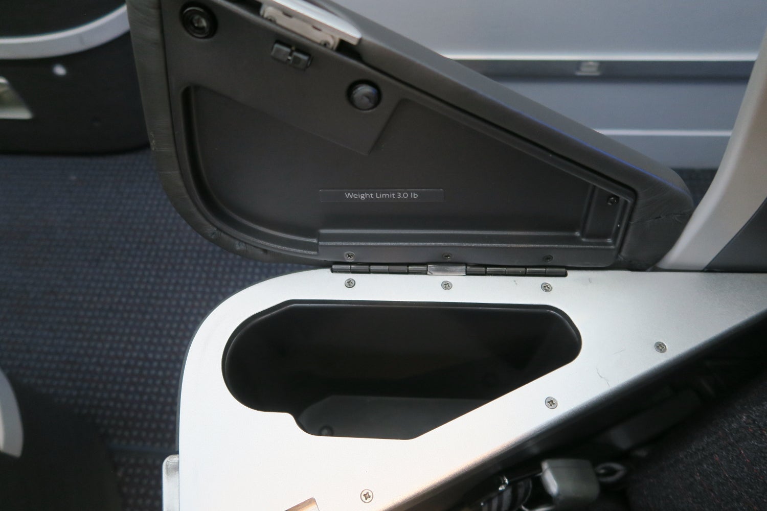 On the other side of the seat were two compartments. One was about 1.5 inches deep and initially held the provided Bose headphones.