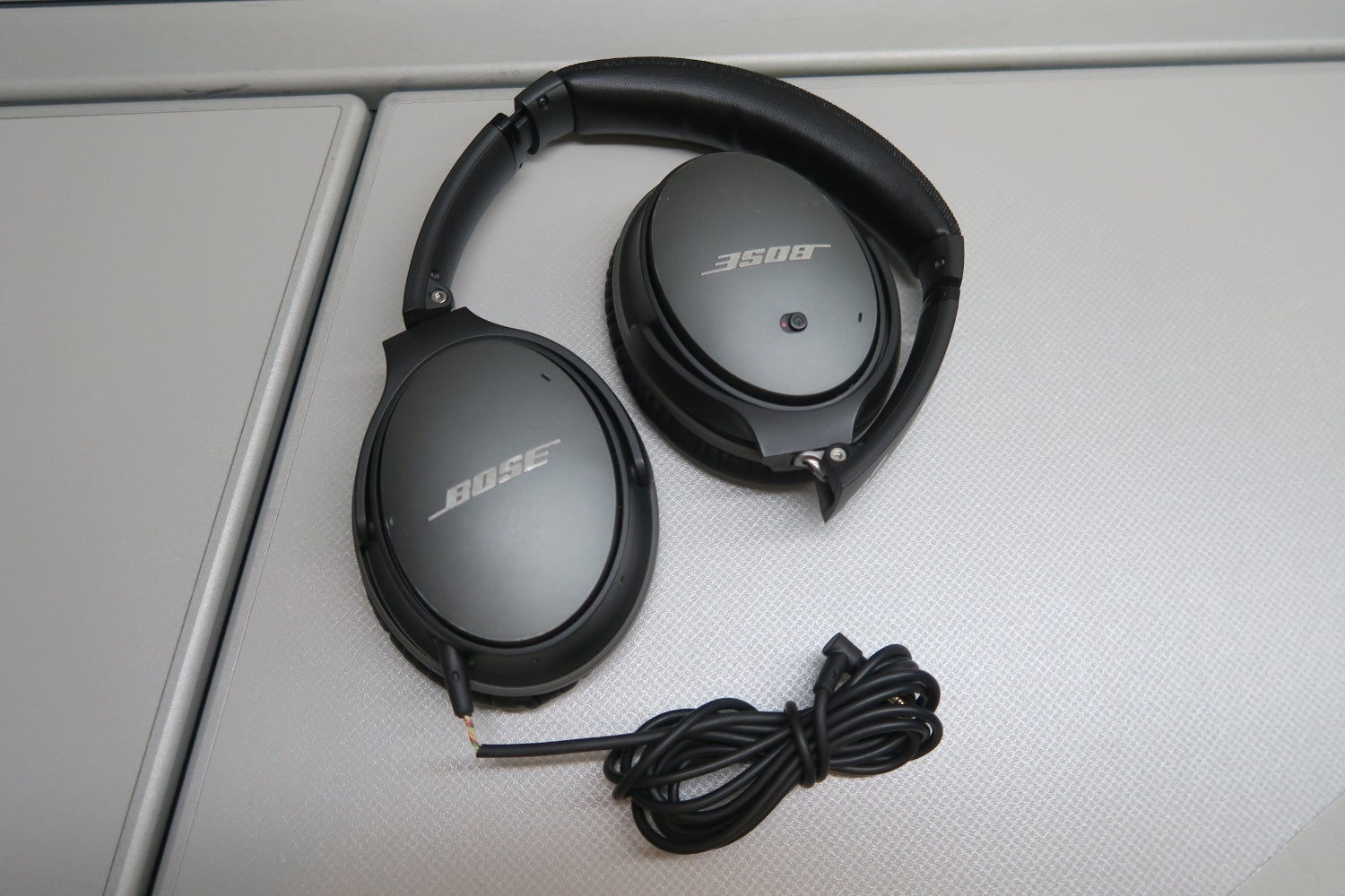 The headphones were the folding Bose headphones often found on American's international business-class flights. The ones at my seat had a fraying cord, but the sound provided was still good. Although I try to limit what I carry since I'm on the road full-time, these headphones made me consider purchasing high-quality noise-canceling headphones. Unfortunately, they were collected 35 minutes before landing.