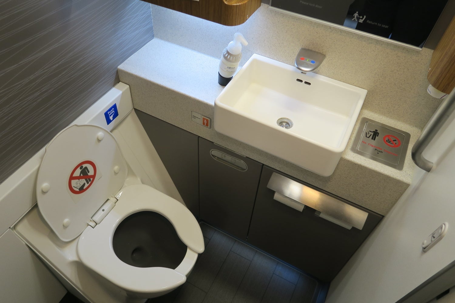 There were three business-class lavatories: one in the front of the aircraft and two between the business-class cabins. The lavatory behind 5A was larger and handicapped-accessible.