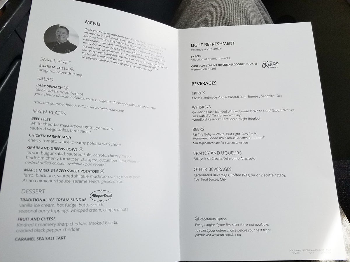 Short version: American's food offerings on this flight were very good. The positive notes began on the ground, with the AA site offering the chance to book my meal.