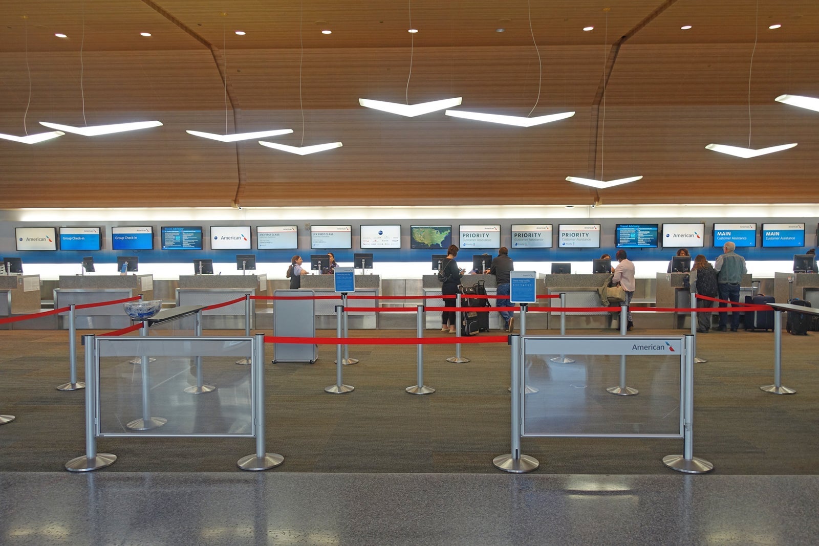 With a 11:52am departure, I showed up at the airport at 8:30am so I would have time to explore the Admirals Club. The AA check-in desks at Terminal 2 weren't crowded at all. I had already checked in with the American app on my phone, but checking in through the priority lane would have been a breeze too.