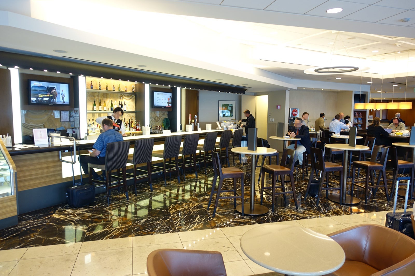 Before a red-eye to JFK, the bar area might not have been so uncrowded, but at 10am I found lots of space.