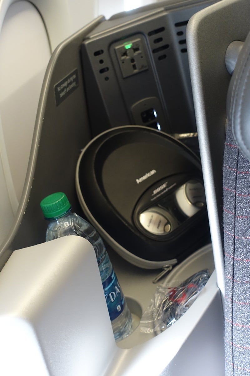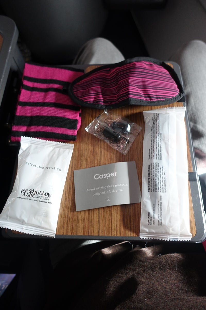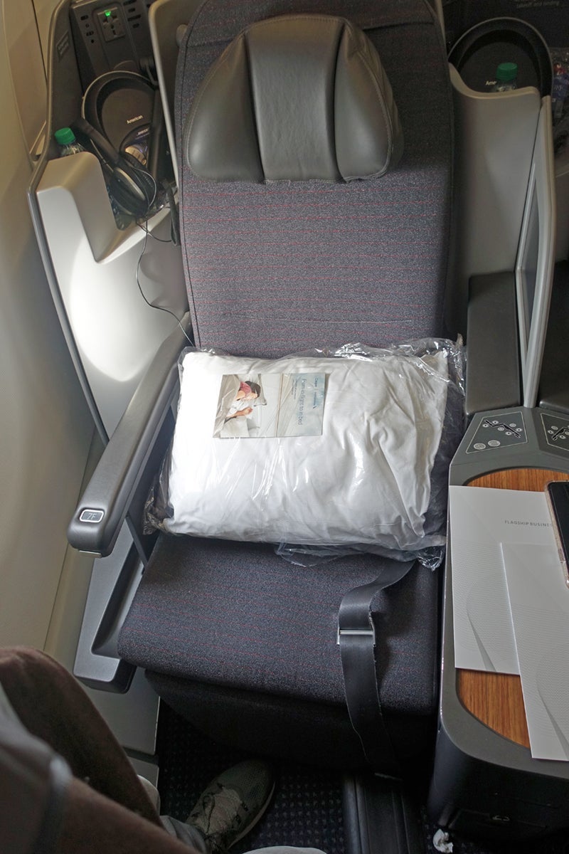 Bose headphones, comforter and pillow and amenity kit were on the seat. I had brought my own Bose set, too, though the one offered by the airline was very good.
