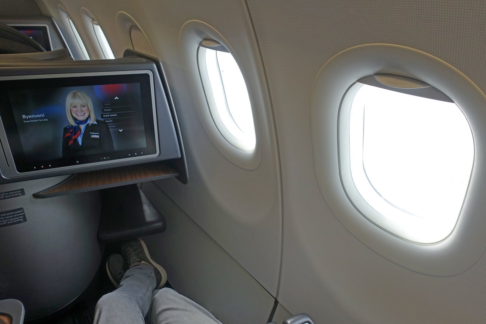 I loved the big, sharp, responsive touchscreen. The IFE was a pleasure to use, and offered a wealth of video and audio choices, plus a very good map function. American also deserves a shoutout for offering Haitian Creole as a language option. It's a language spoken by more than 7 million people, but rarely seen on inflight entertainment systems.