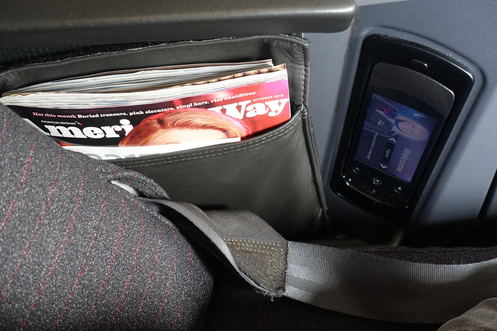 To my left was a pouch with the American Way magazine and the usual literature, next to the remote for the IFE, which could be used as an alternative to the touchscreen.