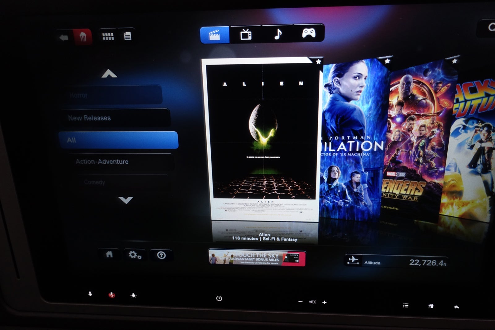 I counted at least 90 movies available, and for a flight of under five hours, that is plenty — even the fussiest of passengers would have found something to watch that suited their tastes. I liked especially the depth of the music catalog. Audio often gets short shrift in IFE systems, but not here: The rock selection, to name just one, was far beefier than many other airlines'. The inflight magazine was available in electronic format on the IFE as well as a physical copy.