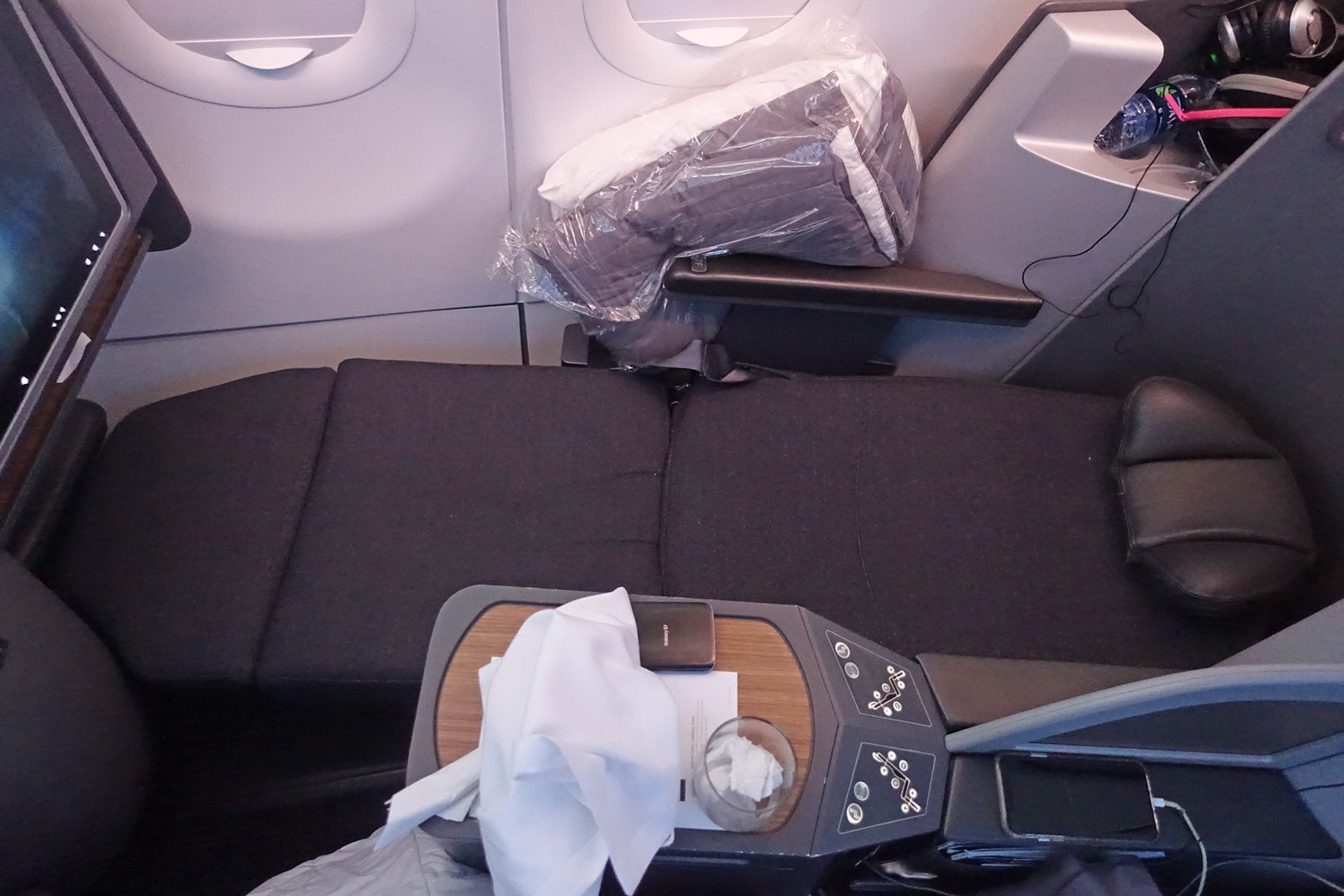A big plus of an otherwise middling seat was the duplicate seat and light controls easily accessible from the lie-flat position.