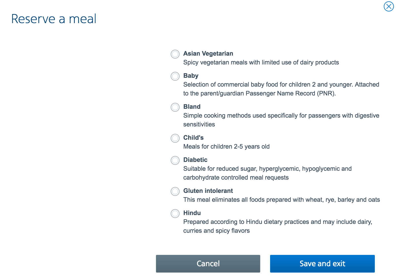 The site also offered quite a few options for special meals.