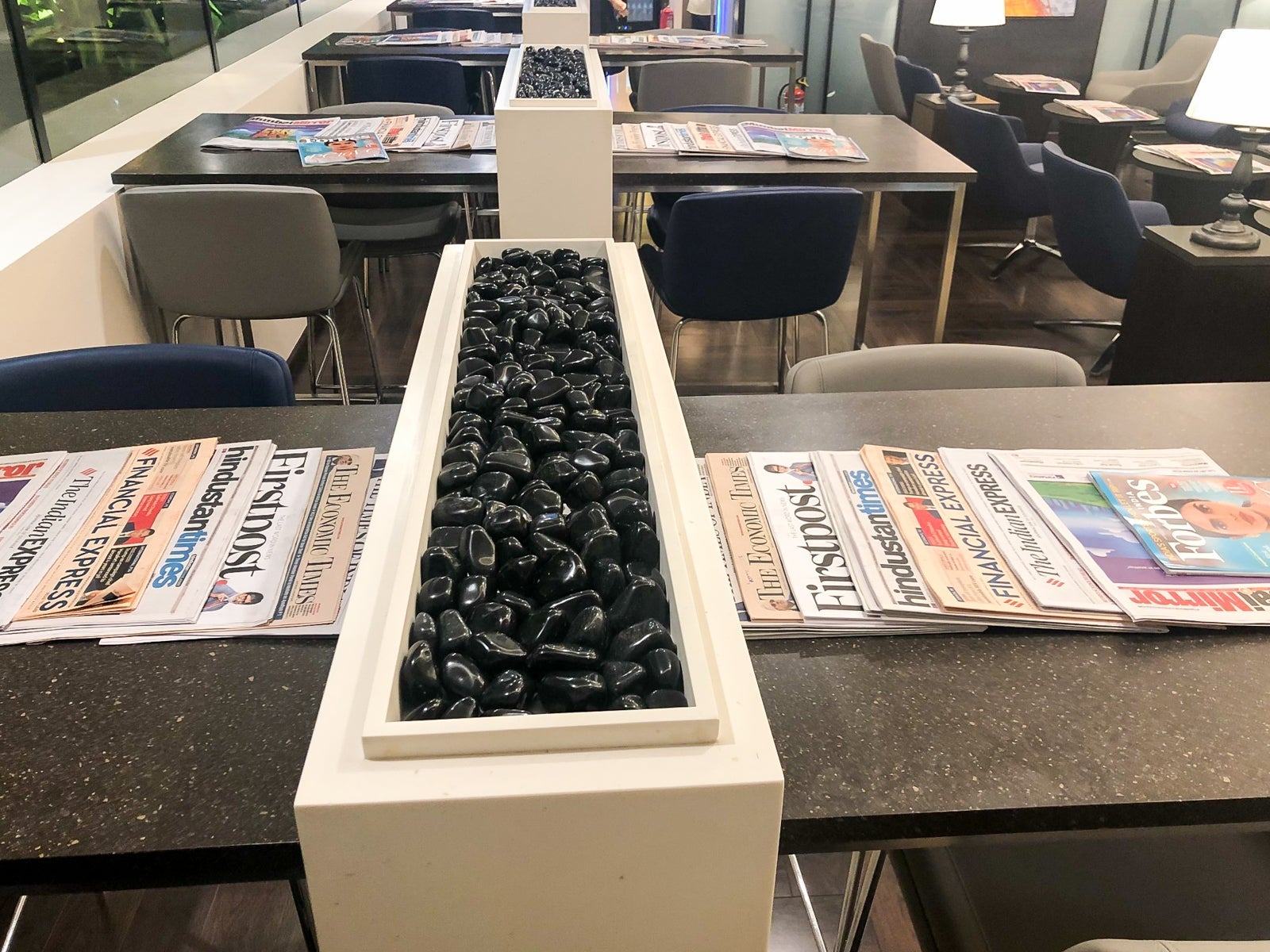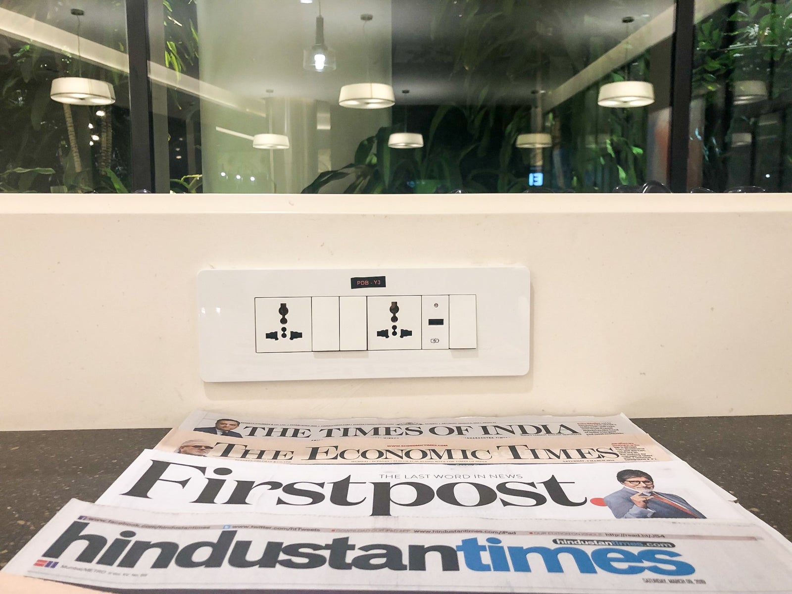 The lounge provided a variety of daily and weekly Indian newspapers and publications such as Forbes India.