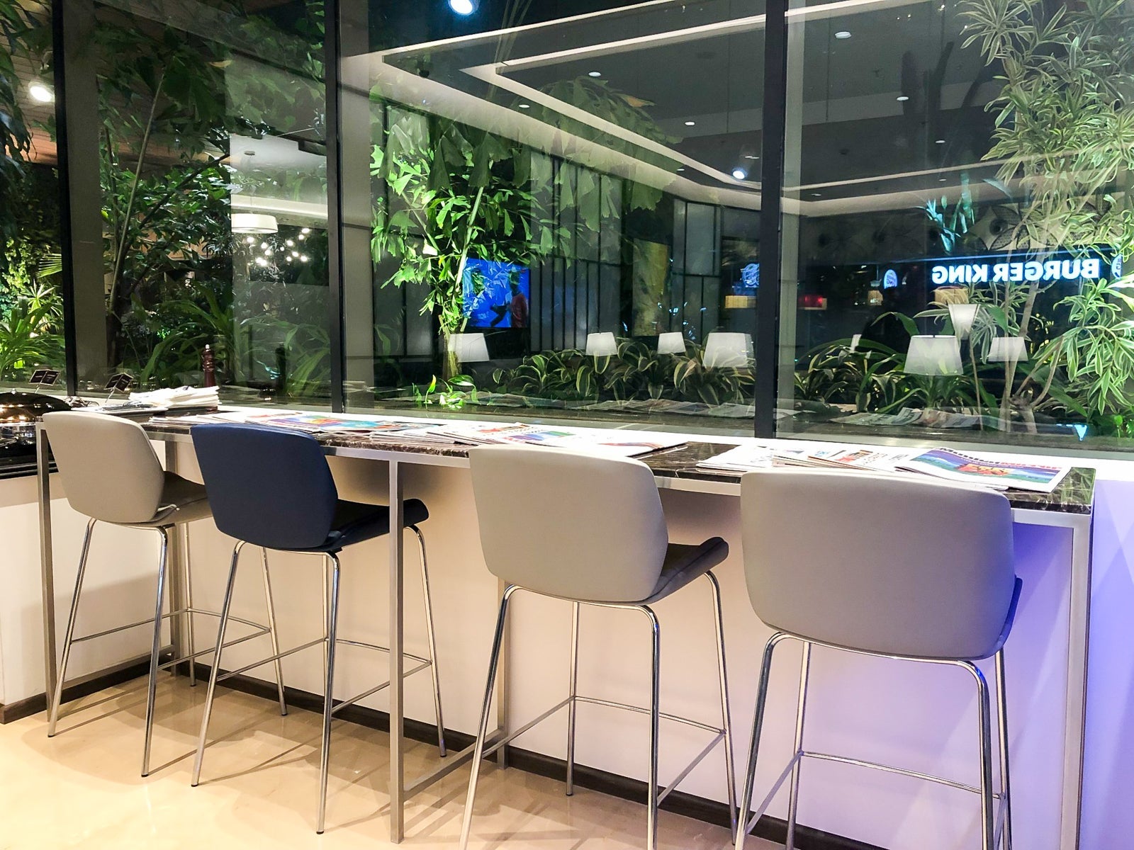 The space itself is compact, and it's divided between a common area and a separate Centurion area. As you enter, you will notice the green living wall design that has come to be associated with American Express lounges across the globe.
