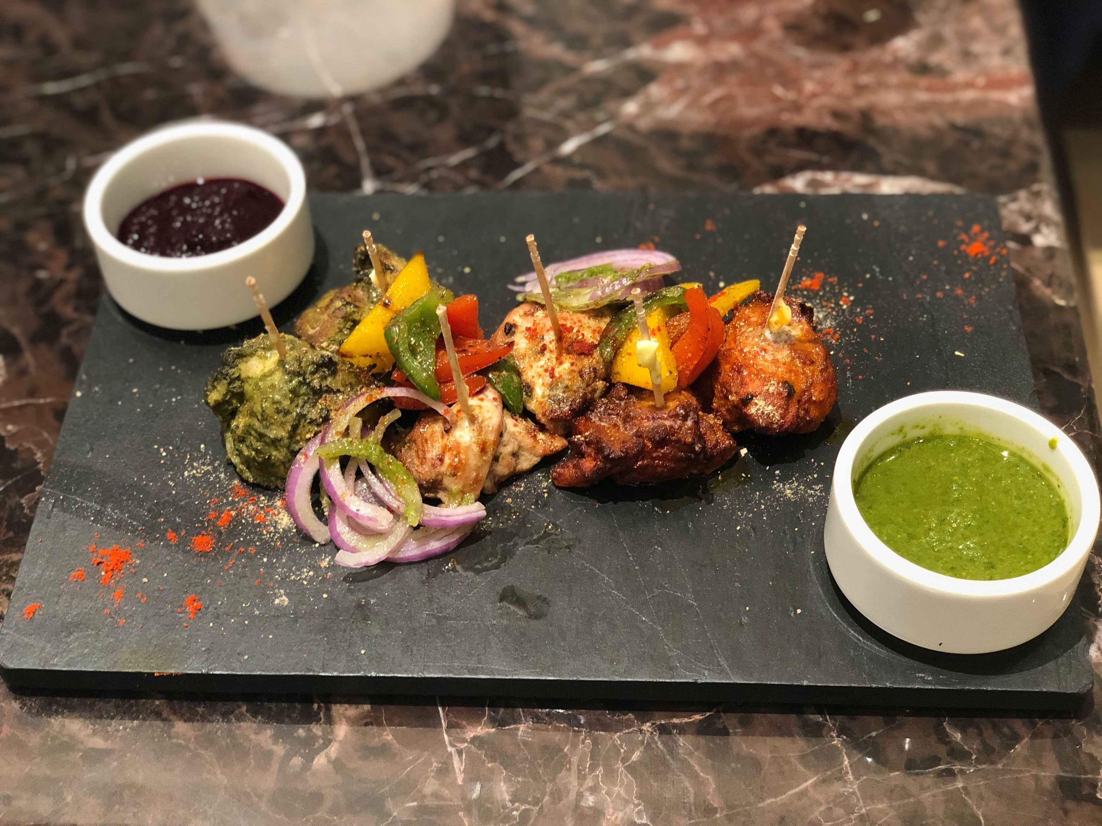 For all-day dining, there was an even larger assortment, including crowd pleasers such as chicken biryani and fish and chips. The challenge on this visit was to select an assortment that would still leave me with an appetite for dinner on my upcoming flight to Delhi. For my tasting session, I ordered the chaat sampler and chicken tikka three ways, both of them to be shared with my wife.