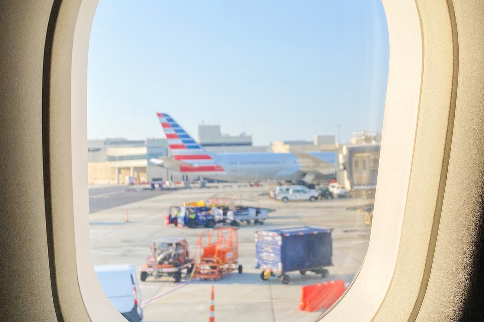 American touts "deep cleaning of tray tables, seatbelt buckles, armrests, window shades, seatback screens doors and overhead bin handles." However, strangely, I did not receive any hand sanitizer or wipes upon boarding or at my seat. There was a wipe hidden within the amenity kit though.