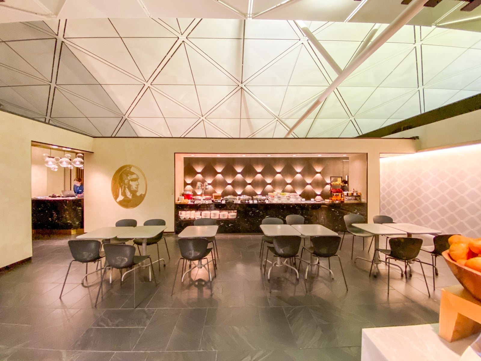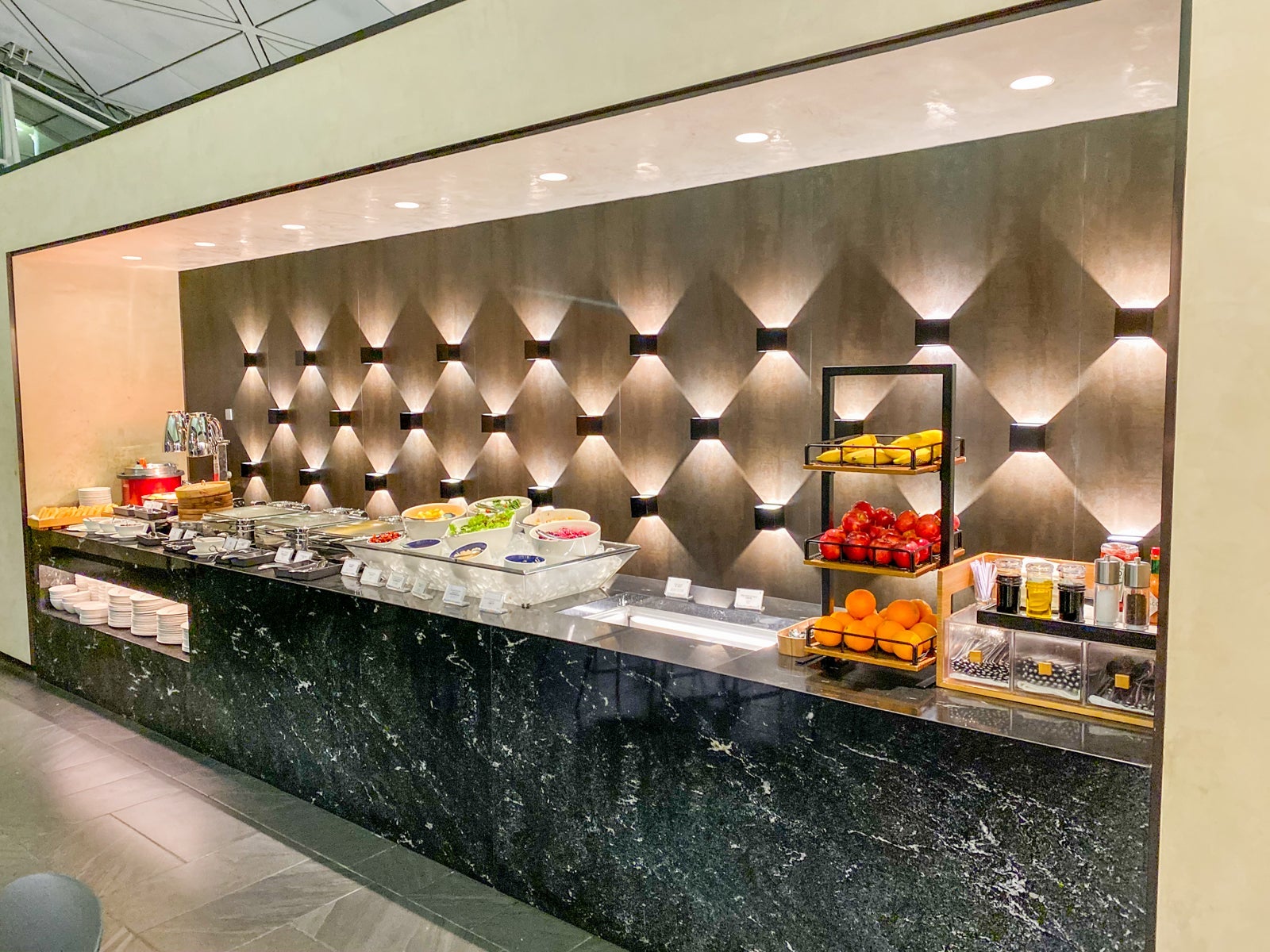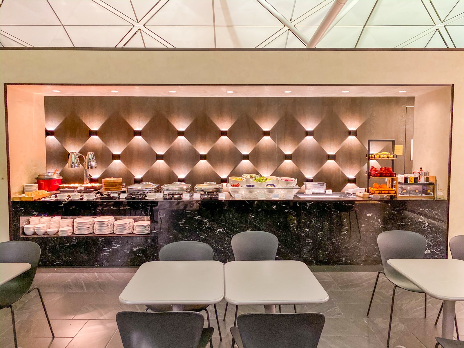 However, there was one peaceful area that I didn't have access to, the dedicated space for Centurion cardholders. Black card holders had a separate space behind the behind a sliding black door leading to more seating and a la carte dining.