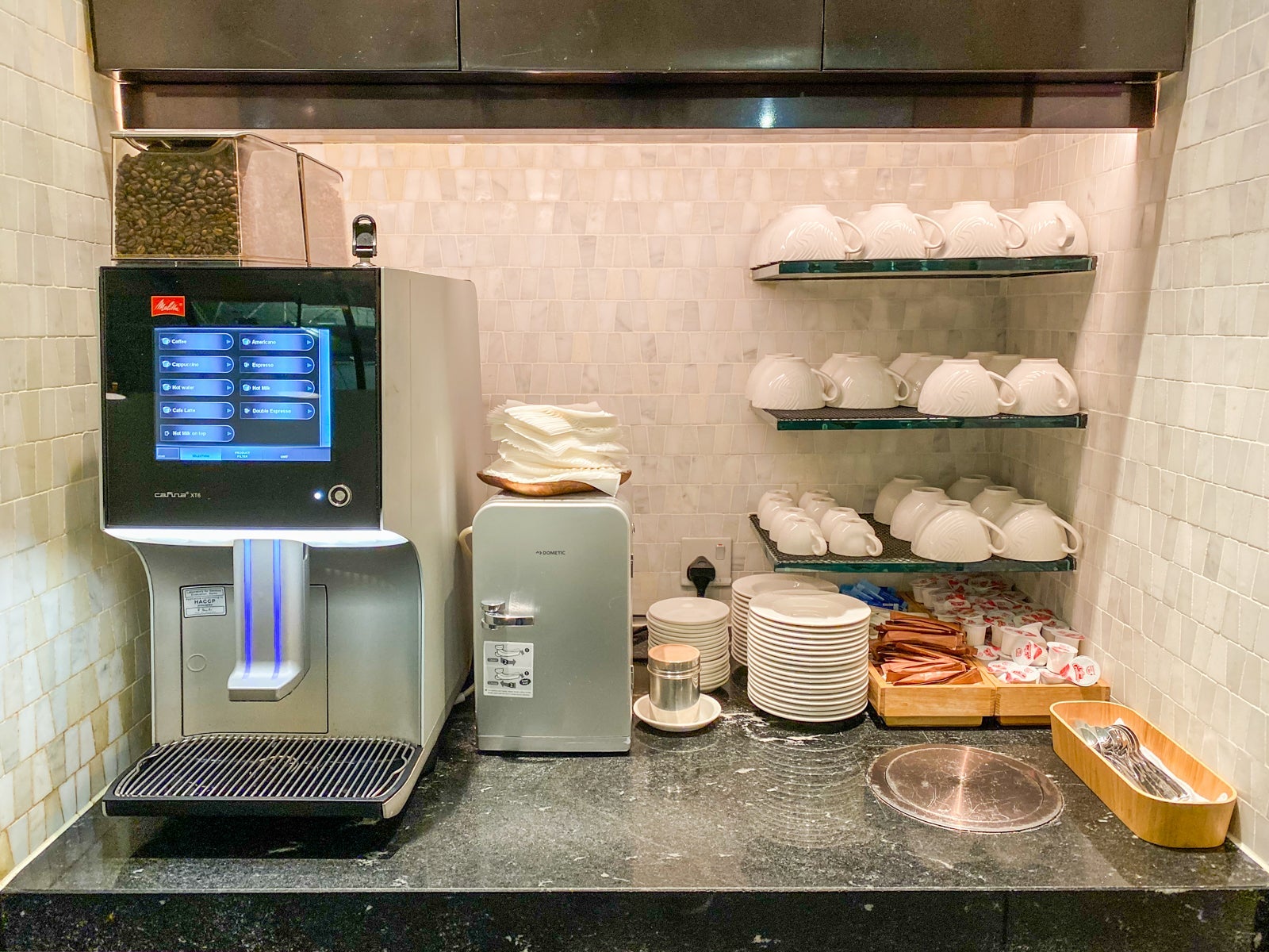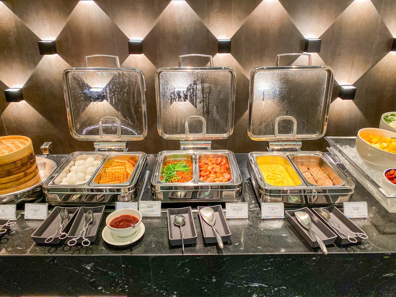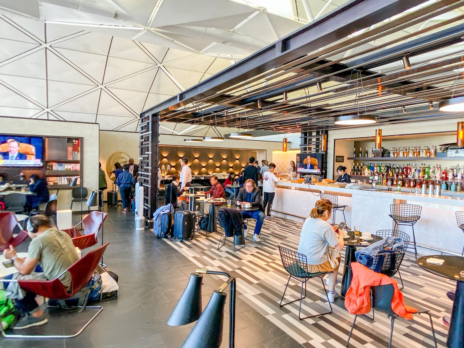 However, there was one peaceful area that I didn't have access to, the dedicated space for Centurion cardholders. Black card holders had a separate space behind the behind a sliding black door leading to more seating and a la carte dining.