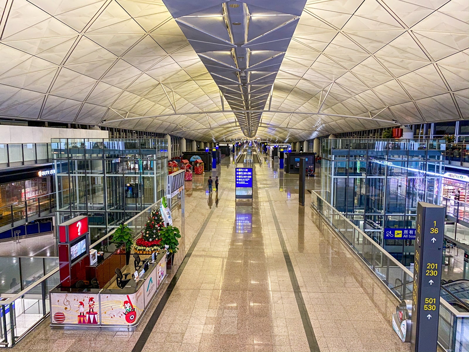If you're originating in Hong Kong, you exit security and passport control near gates 1 and 5. While you could walk all the way to Gate 60, there's also an Automated People Mover that stops at gates 40 to 80.