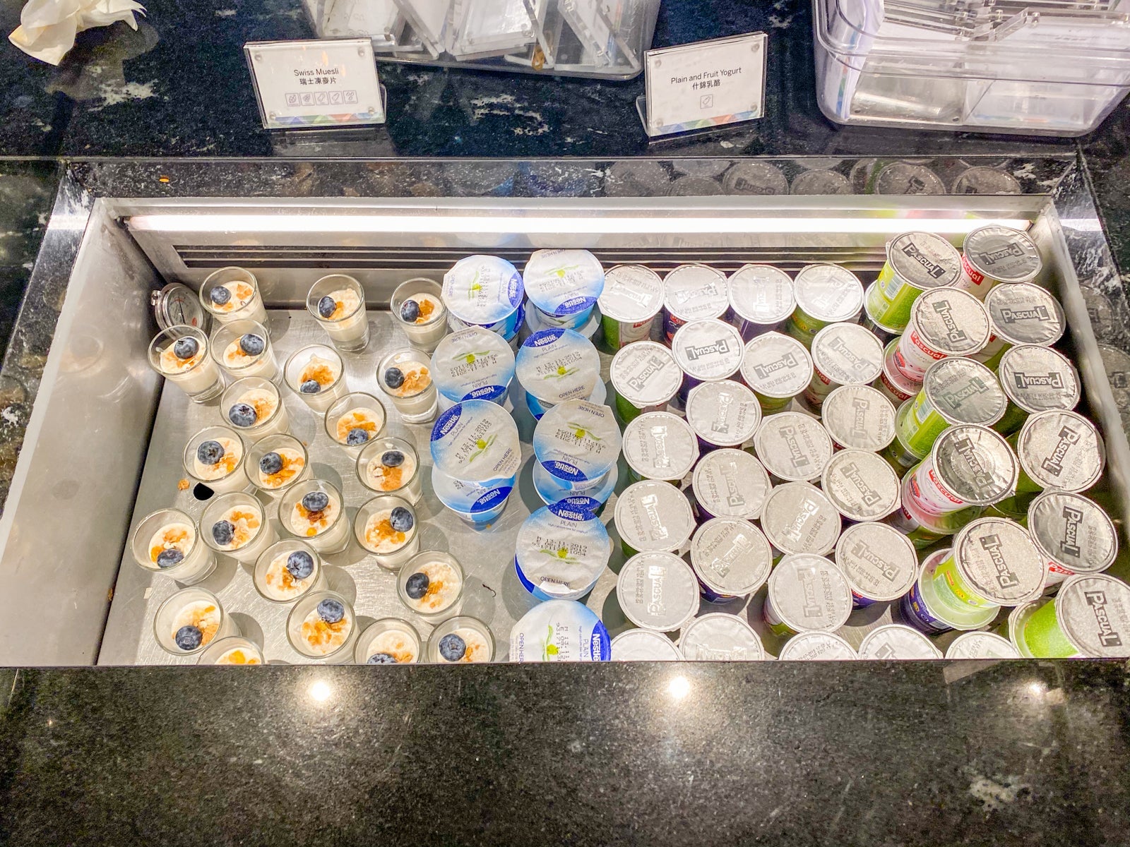 Right next to the salad bar was a small refrigerated section with yogurt and Swiss muesli.