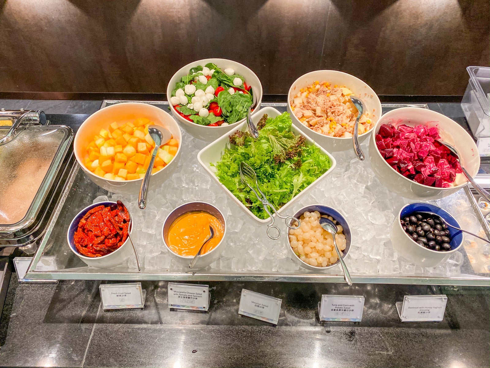In addition to the hot food, there was also a salad bar with various fruits and vegetables.