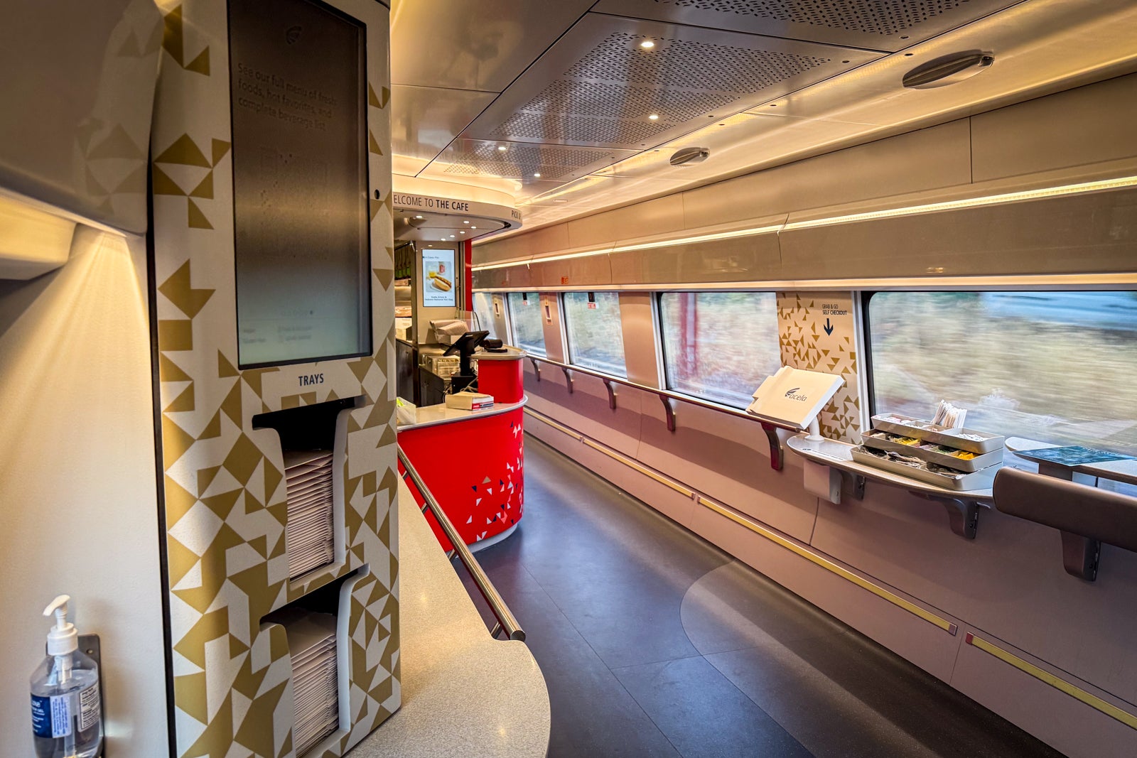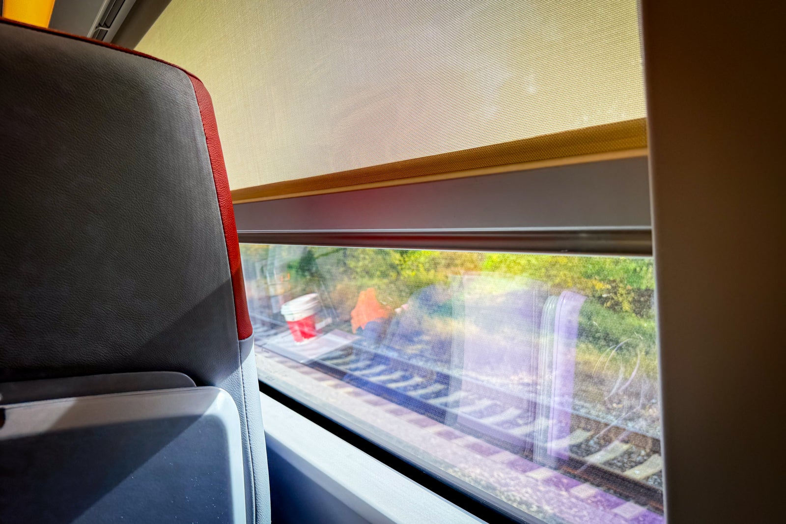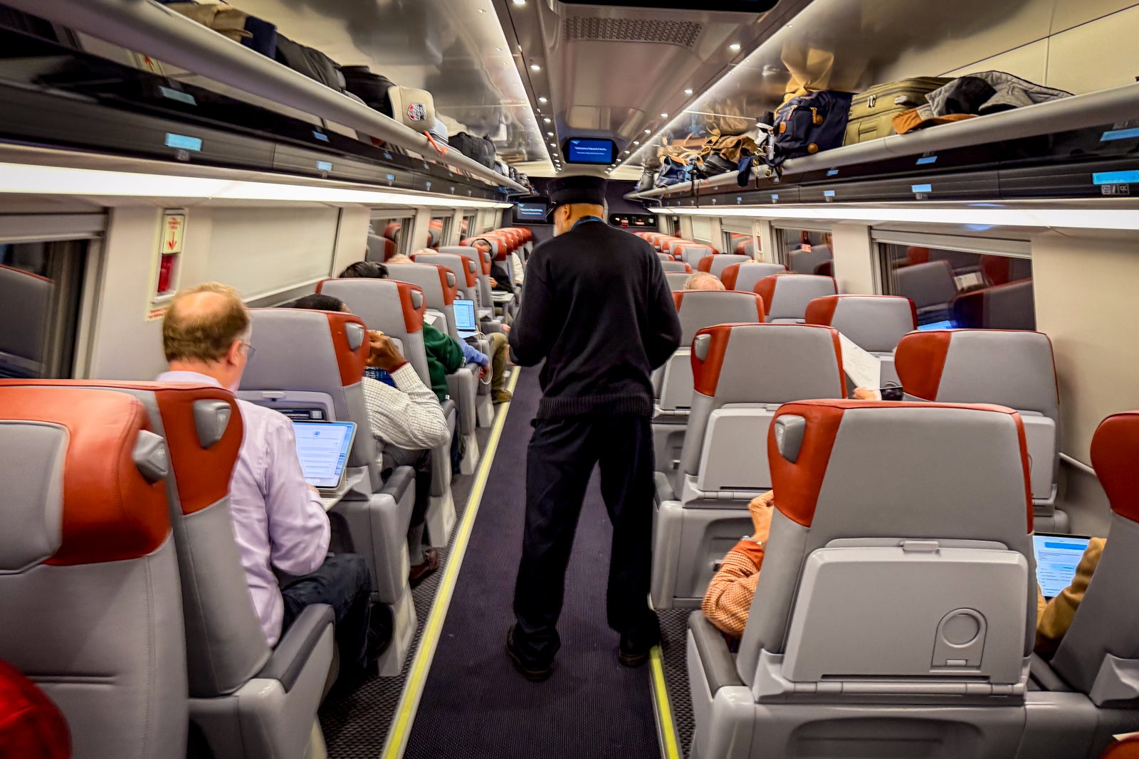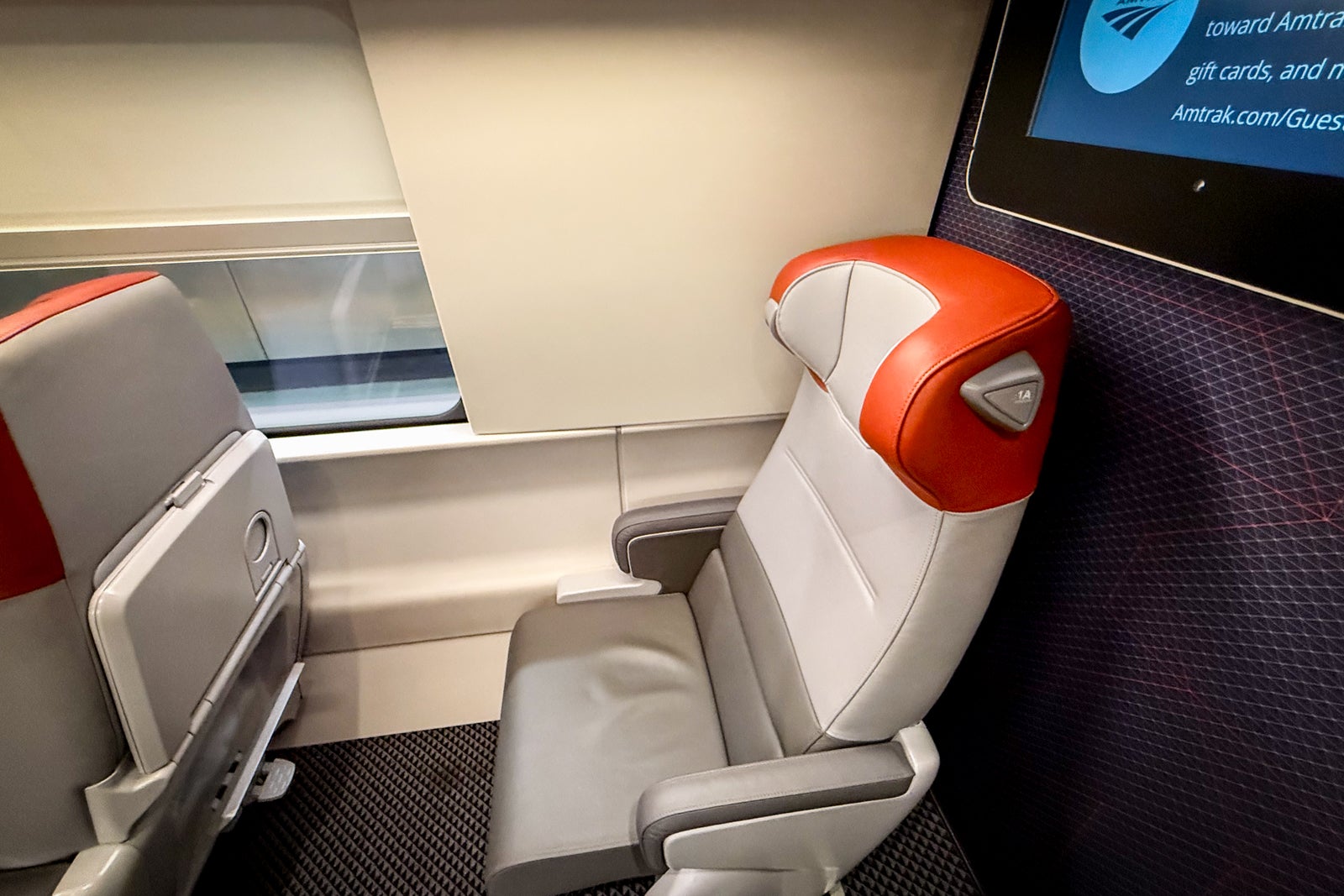 The ergonomic seats were fine. They are still a bit firm, but I imagine they will become more comfortable as they wear in. I was in seat 1A in the very rear of the train car. It's nice to have modern finishes, and the pops of red add a nice touch in the first-class car.