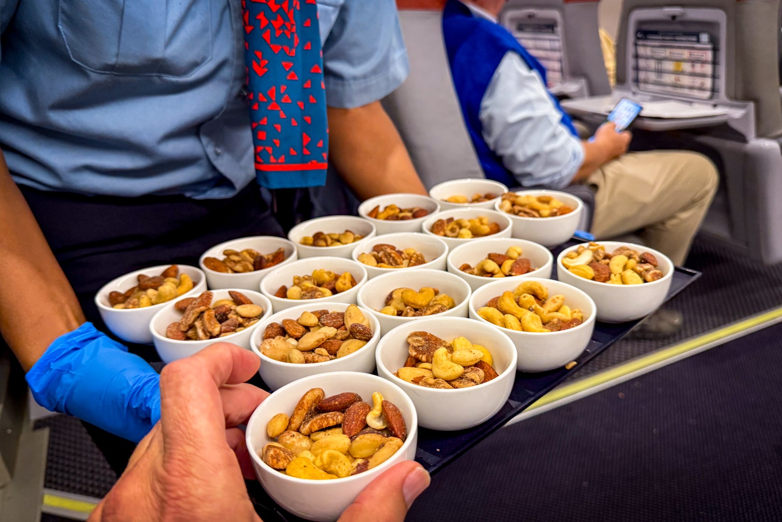 Cabin attendant Danielle came around and announced that staff would serve beverages and free meals shortly. She and Antonio were working the first-class cabin, and they did their best to smooth out a jarring boarding process.