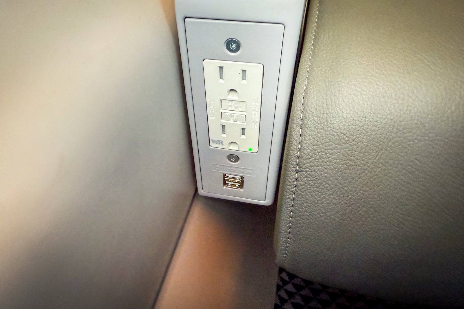 There are reading lights at every seat, and individual power outlets feature three-prong AC outlets and USB-A ports.