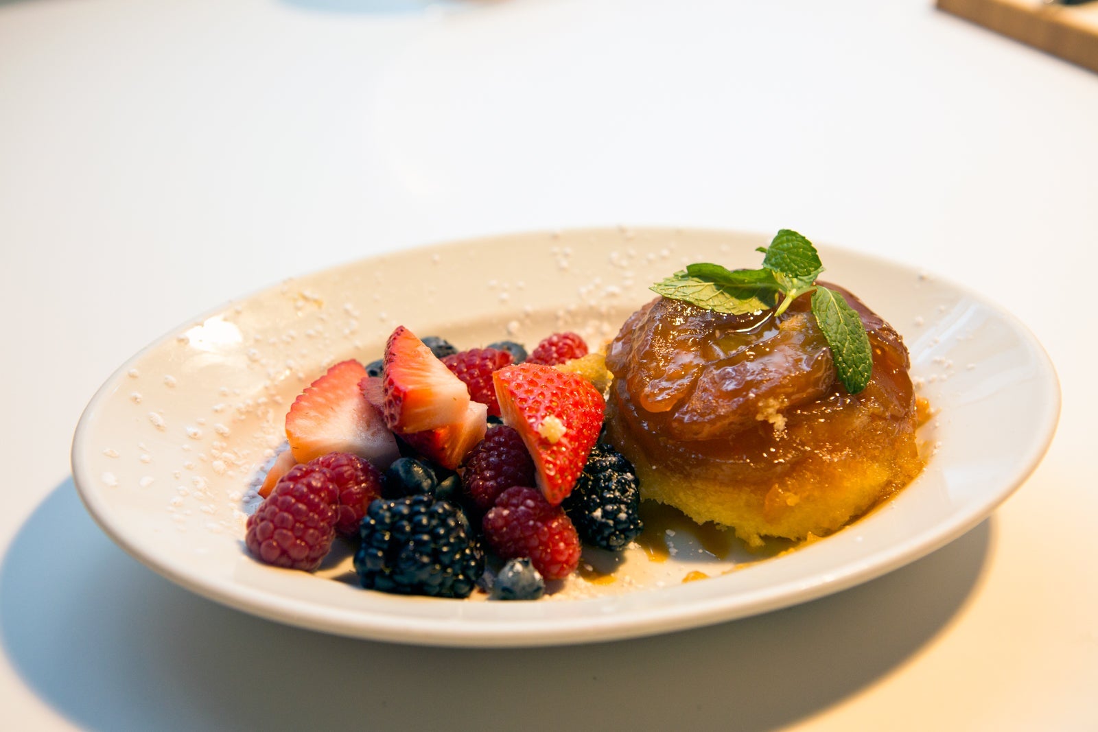 The tarte tatin, which came with a scoop of vanilla ice cream on the side, was sweet with thick, gooey, caramelized apple slices that stuck to the insides of my incisors in an indulgent way. I've had many variations of tarte tatins with various fruits that ranged from flaky to caky, and this one came out most like a superpowered pineapple upside-down cake.