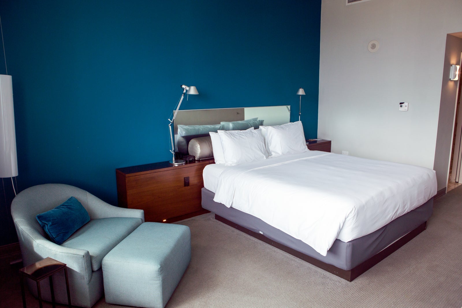 Following the Andaz philosophy of appealing to modern sophisticates with an appreciation for local color, the hotel was mostly clean lines, not-too-dark wood and whites and neutral tones offset by a blue accent wall.