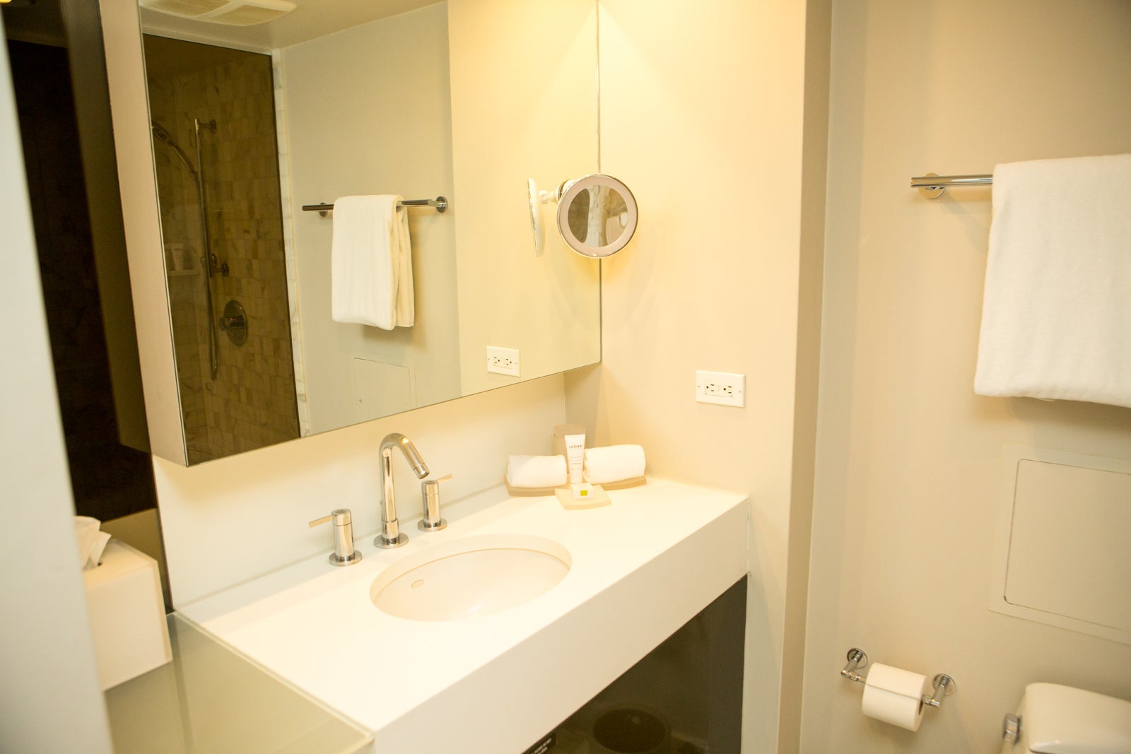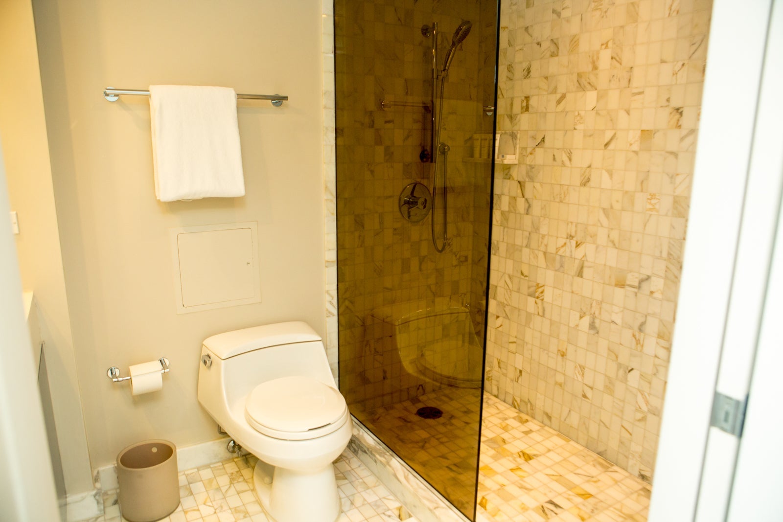 The glass partition that separated the toilet and sink from the shower didn't offer a lot of privacy but the bathroom never flooded or anything, robbing me of the complaint I almost always have about these increasingly prevalent half walls. In every possible way, it was a completely unmemorable bathroom experience, which, if you think about it, is usually the highest compliment one could give a hotel bathroom.