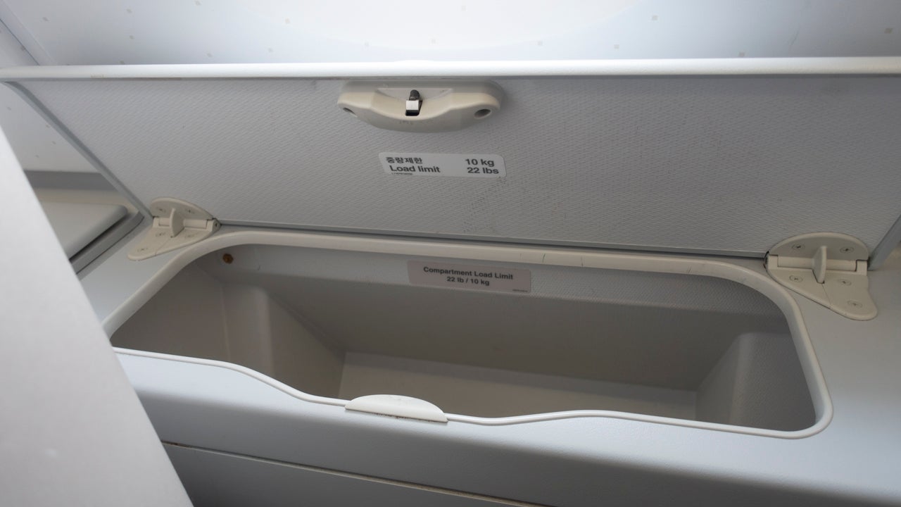 There was also a storage bin where I put my tote bag for most of the flight.