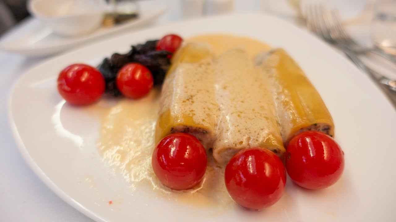 And because calories don't count in the sky, I topped it all off with mushroom cannelloni. I wished it had been a little warmer, but I guess that's what happens when you're flying the biggest commercial plane in the sky with a cabin that's 75% full. Translation: a lot of people to feed.