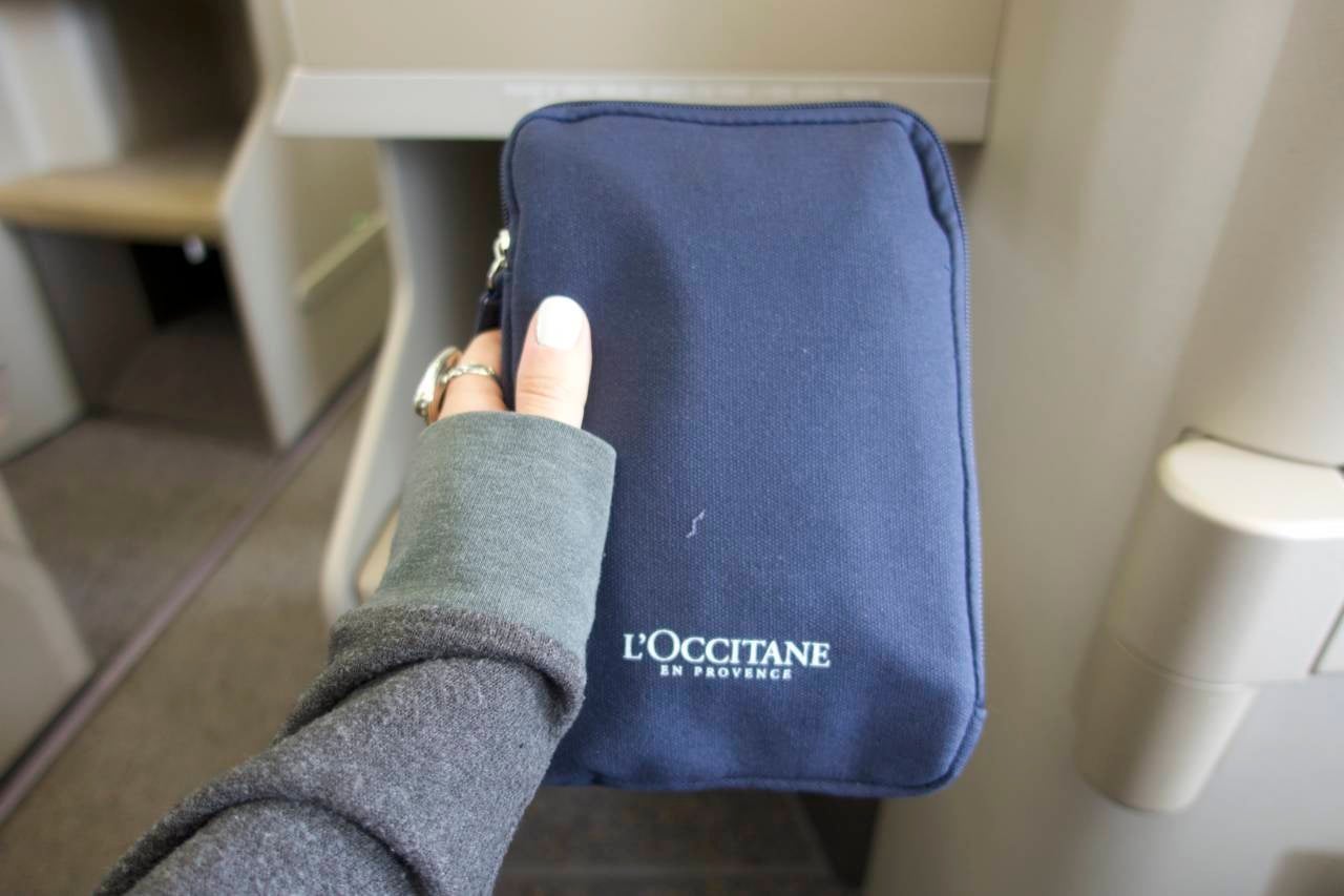 As far as amenities, I was really happy with my L'Occitane products and fluffy slippers. Not going to lie, it felt like a little spa in the sky.