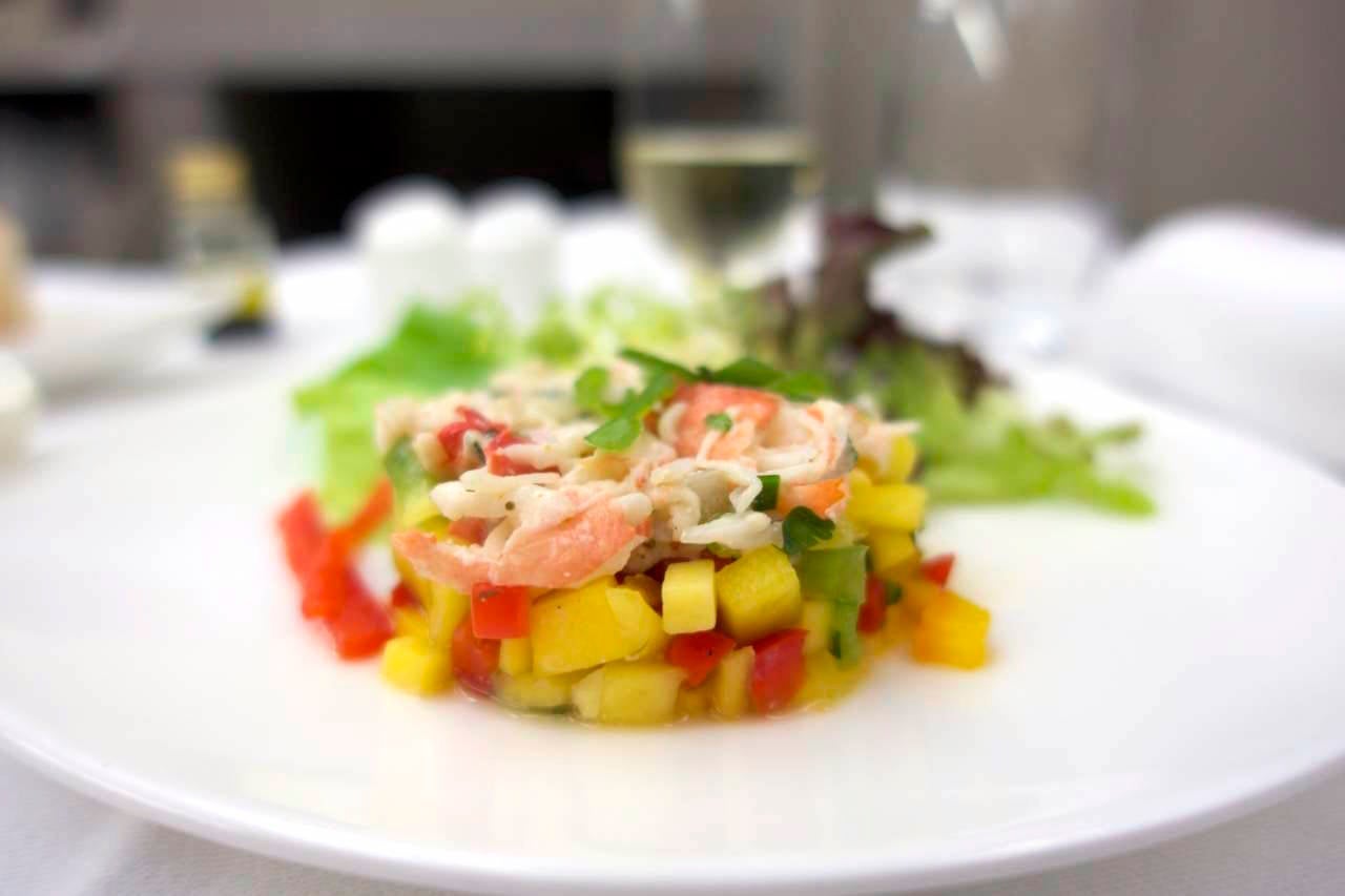 Then we moved on to a lobster salad, which was really tasty and fresh — so much so I almost forgot I was on a plane.