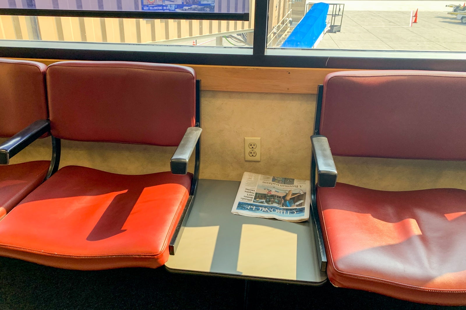 Avelo is using one of the older Bozeman gates. We left from gate A3. There was plenty of seating, but not enough power outlets. That's a big difference from the new B gates at Bozeman, which are brand-new and have plenty of outlets.