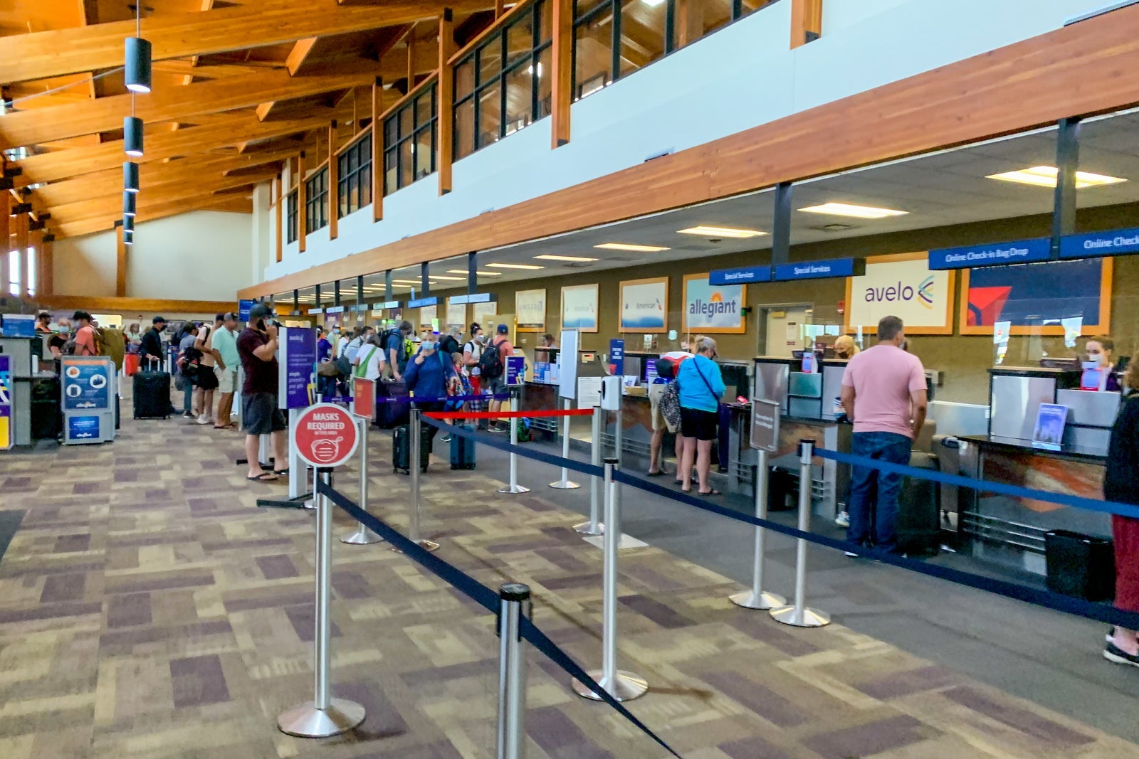 The TSA line at Bozeman was not too bad, but that's probably because I arrived extra early. The Bozeman airport has added hundreds of thousands of seats in the past year as the city has become one of the West's new boomtowns. Its proximity to national parks and the surge of demand in leisure travelers has airlines adding service and larger aircraft, and the airport has struggled to keep up with demand. TSA lines have been extraordinarily long this summer and flights are full. Normally, I can use the PreCheck line, but since Avelo isn't yet participating I had to go through the normal line, and I was worried. I was through in about 15 minutes though, so not bad at all.