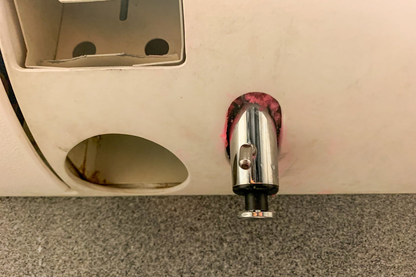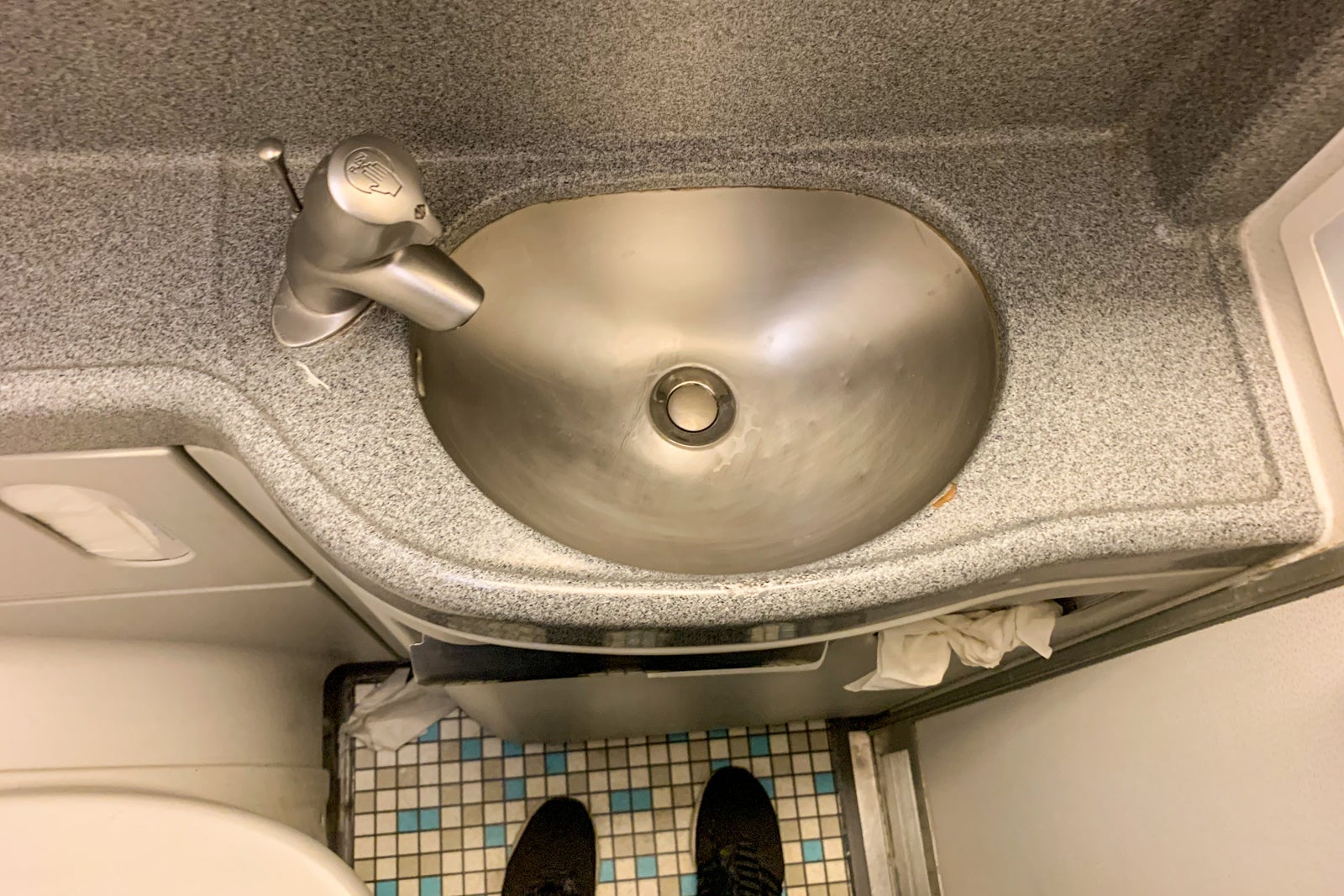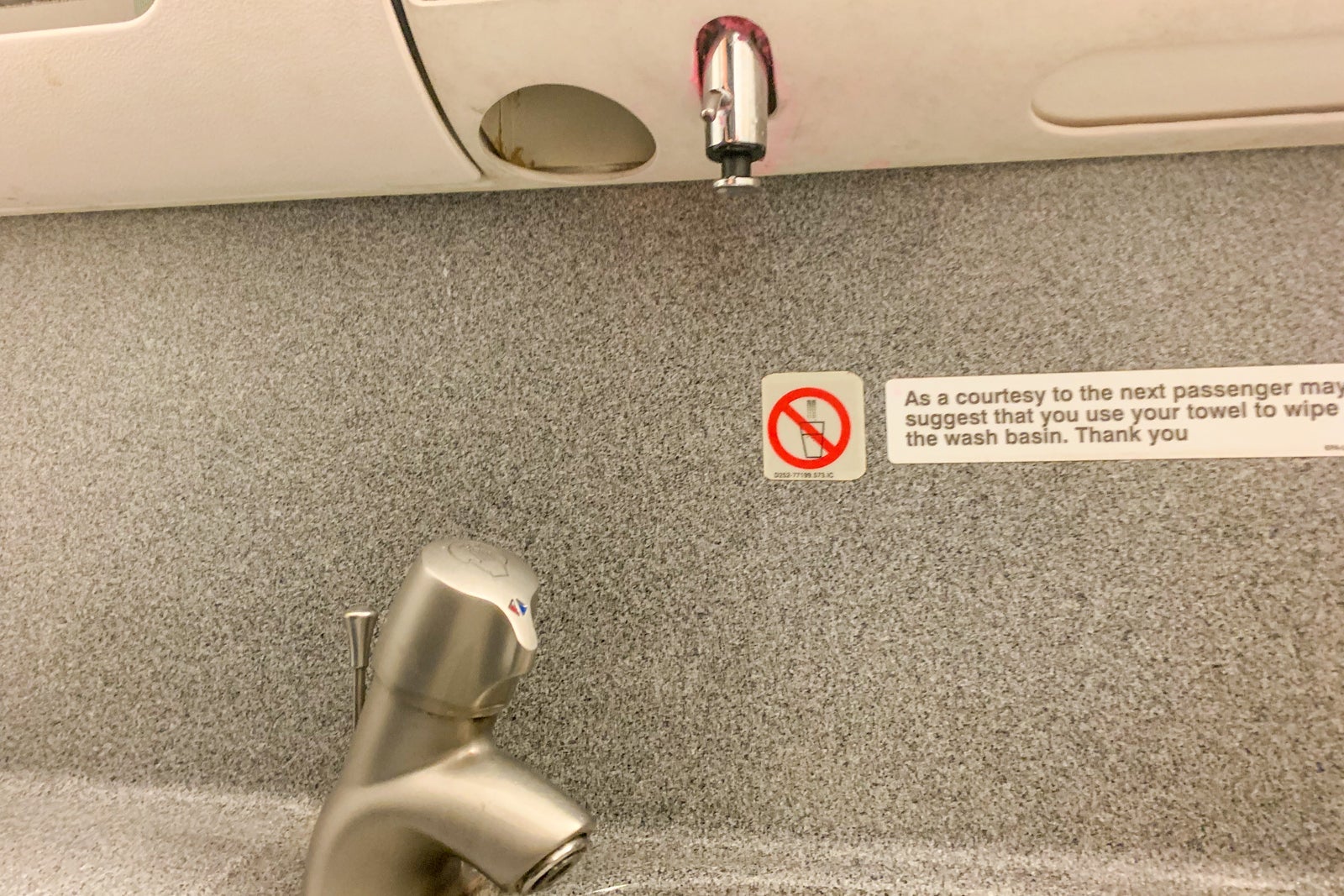 Bathrooms are pretty small and basic. They had the most bizarre soap dispensers I've seen on a plane.